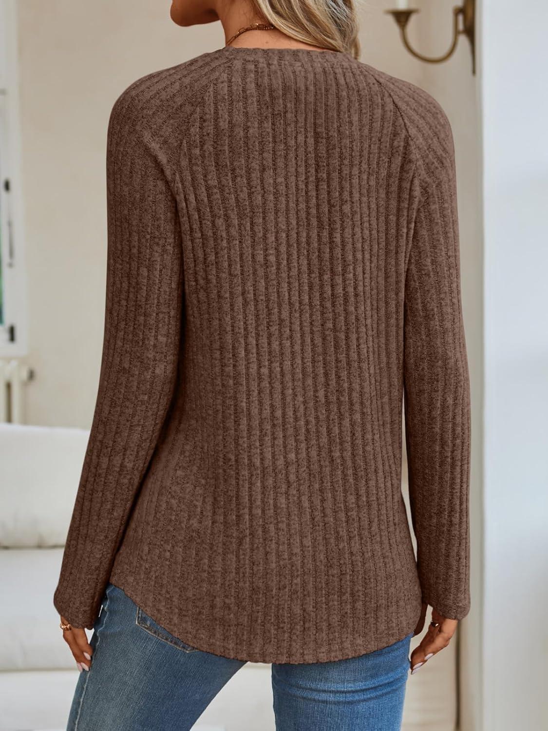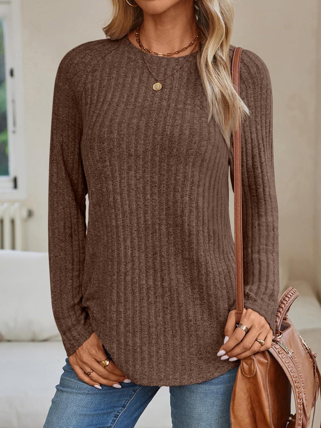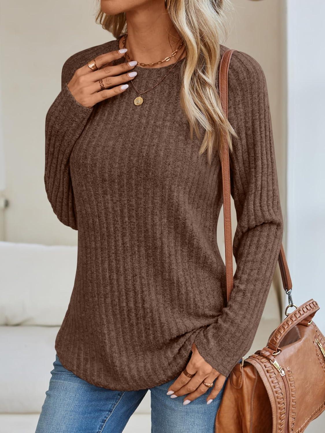 AUTOMET Womens Long Sleeve Shirts Fall Fashion Tops 2025 Crewneck Dressy Sweaters Tunic Winter Clothes Casual Outfits(Chocolate)