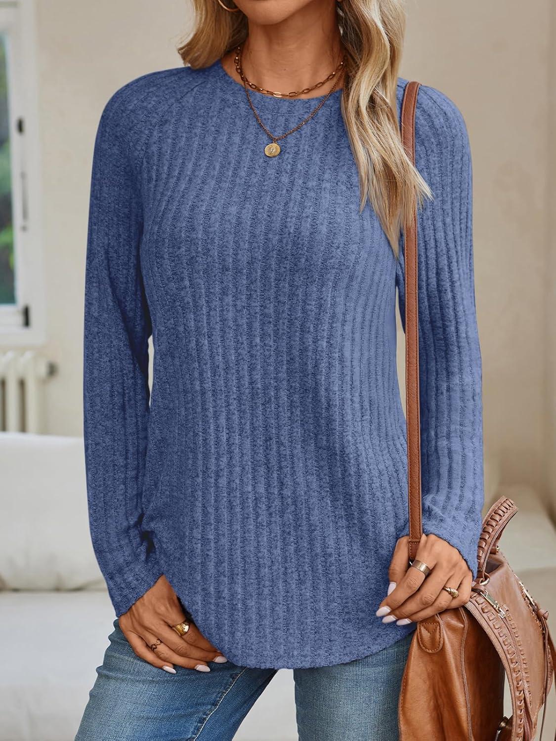 AUTOMET Womens Long Sleeve Shirts Fall Fashion Tops 2025 Crewneck Dressy Sweaters Tunic Winter Clothes Casual Outfits(Darkblue)