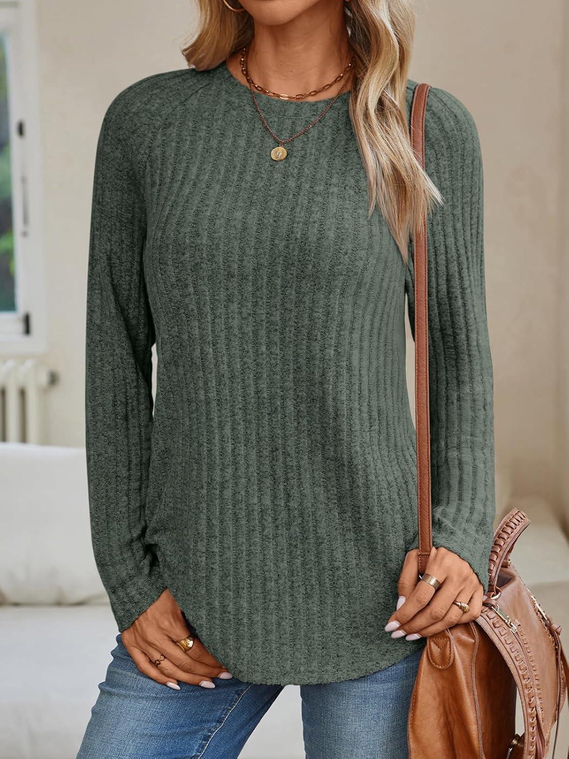 AUTOMET Womens Long Sleeve Shirts Fall Fashion Tops 2025 Crewneck Dressy Sweaters Tunic Winter Clothes Casual Outfits(Green)