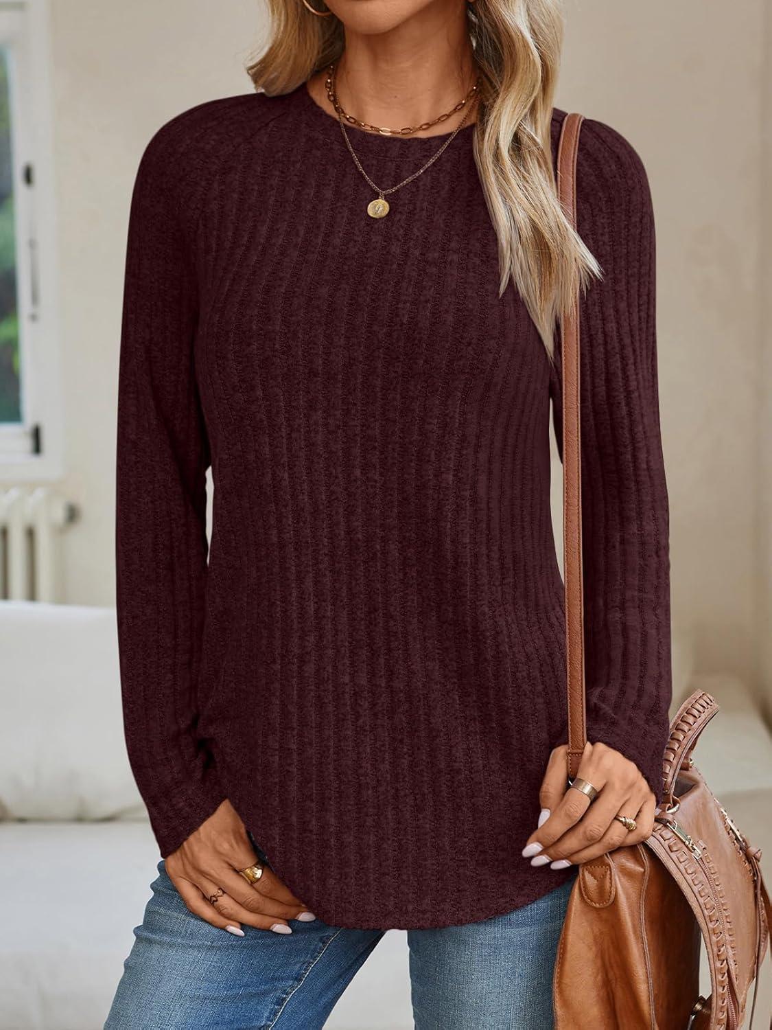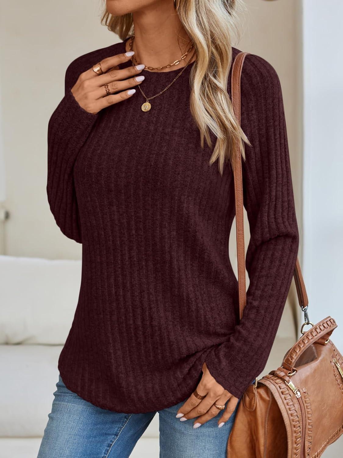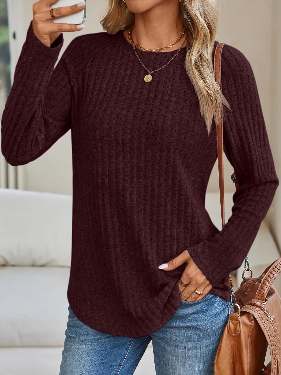 AUTOMET Womens Long Sleeve Shirts Fall Fashion Tops 2025 Crewneck Dressy Sweaters Tunic Winter Clothes Casual Outfits(Maroon)