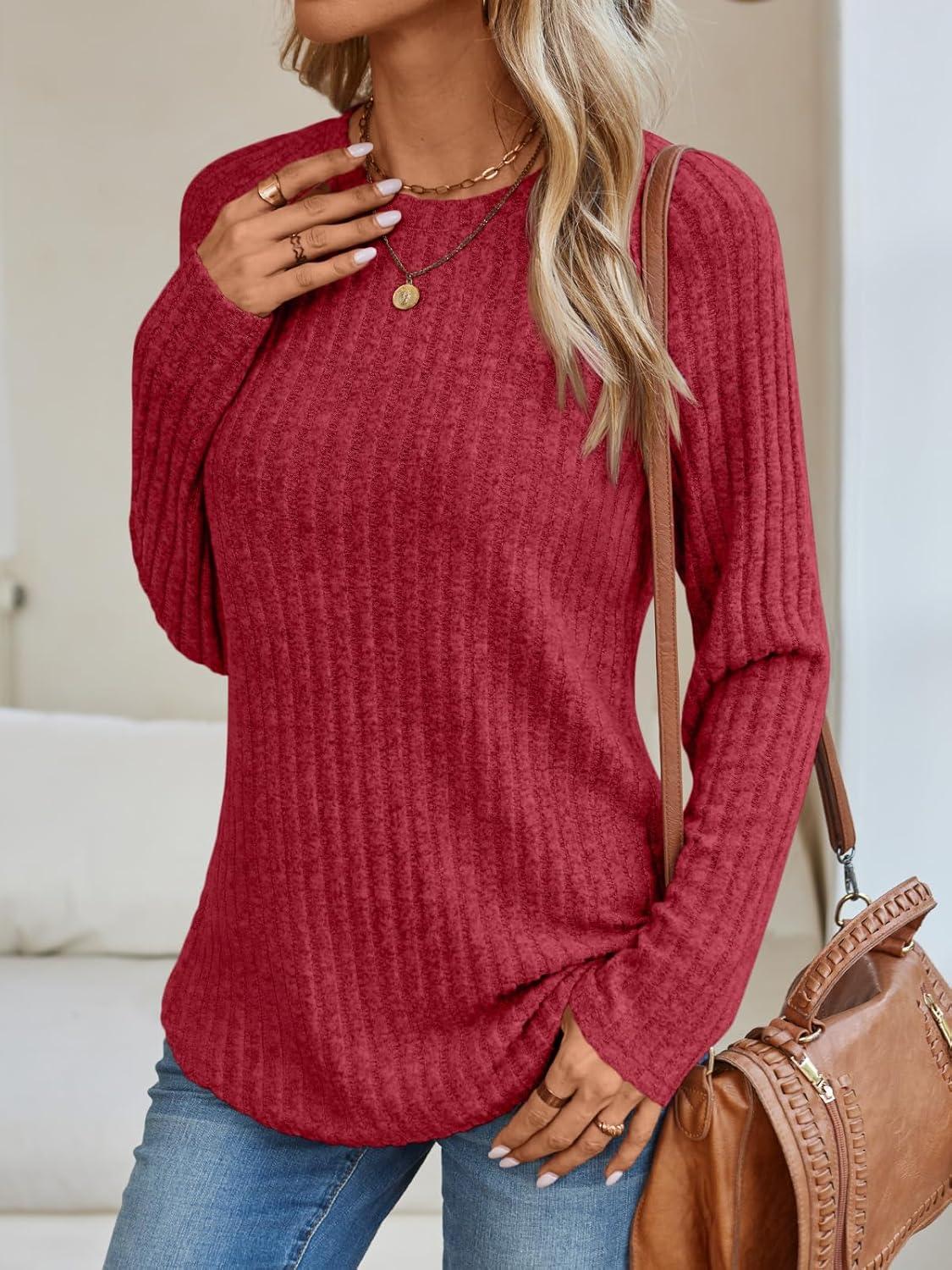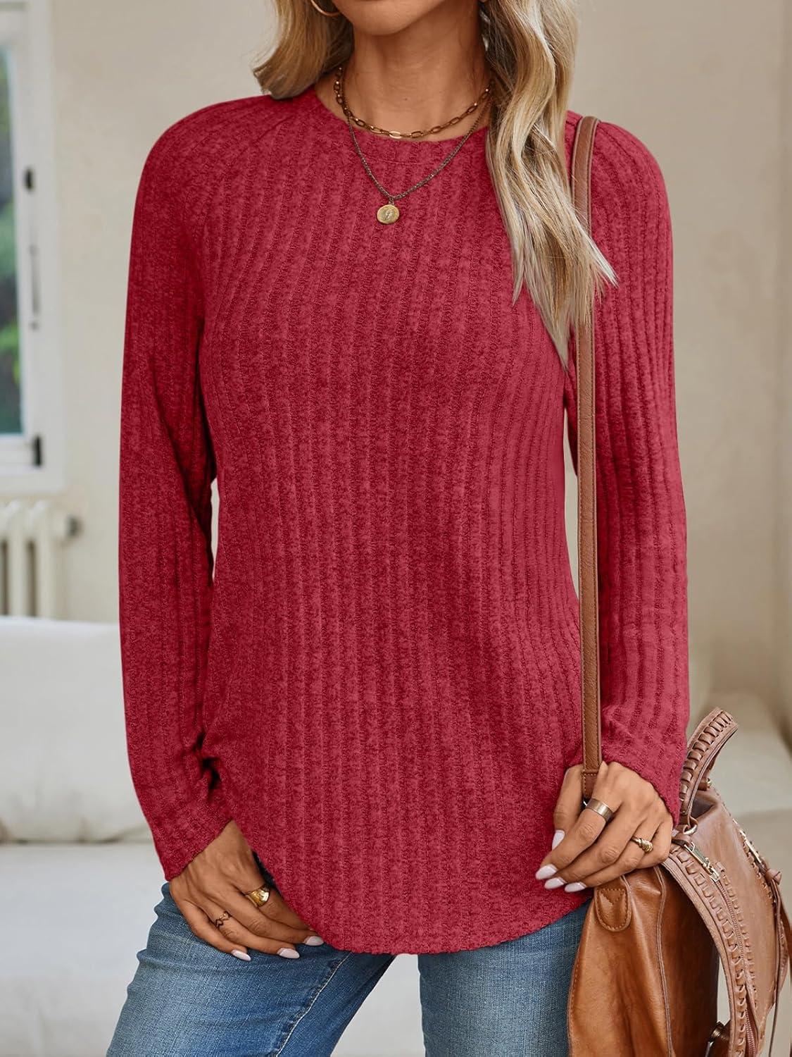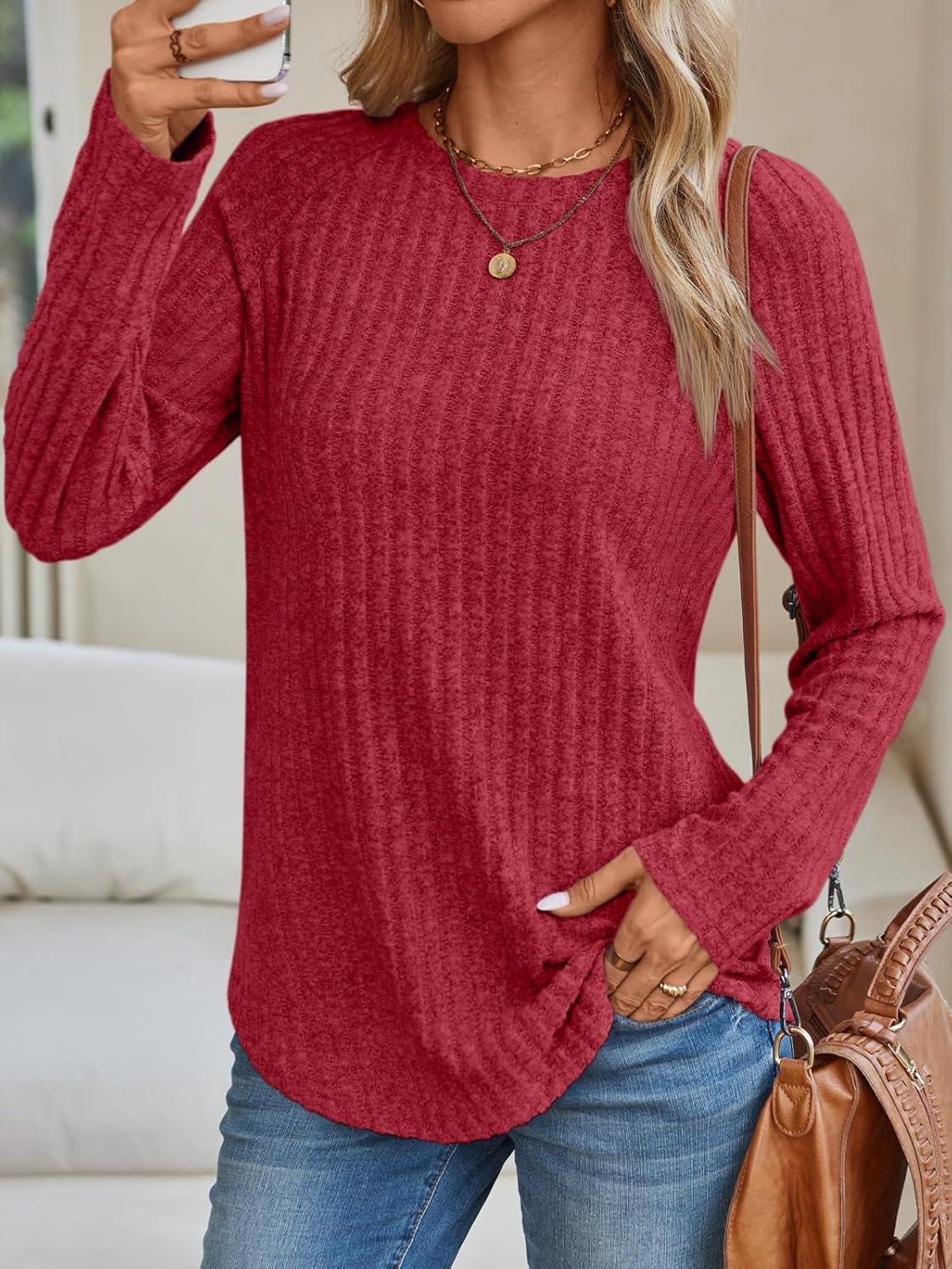Get a free gift with your purchase of AUTOMET Womens Long Sleeve Shirts Fall Fashion Tops 2025 Crewneck Dressy Sweaters Tunic Winter Clothes Casual Outfits(Red). Limited quantities available!