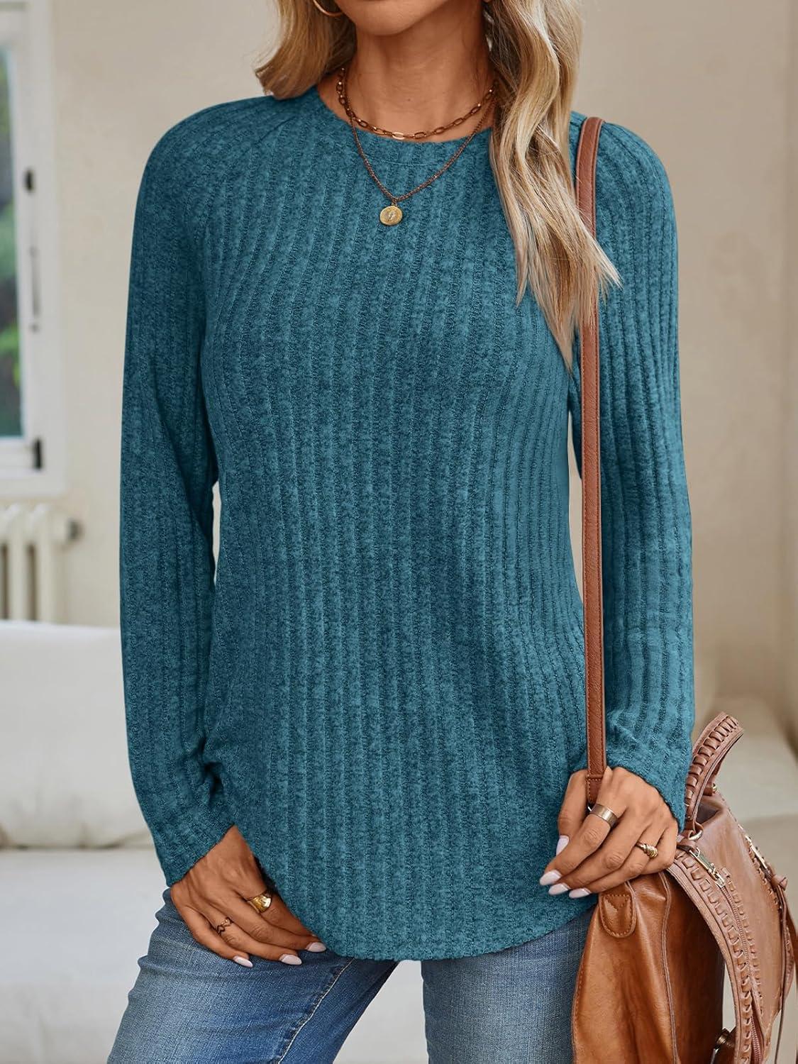 AUTOMET Womens Long Sleeve Shirts Fall Fashion Tops 2025 Crewneck Dressy Sweaters Tunic Winter Clothes Casual Outfits(Teal)