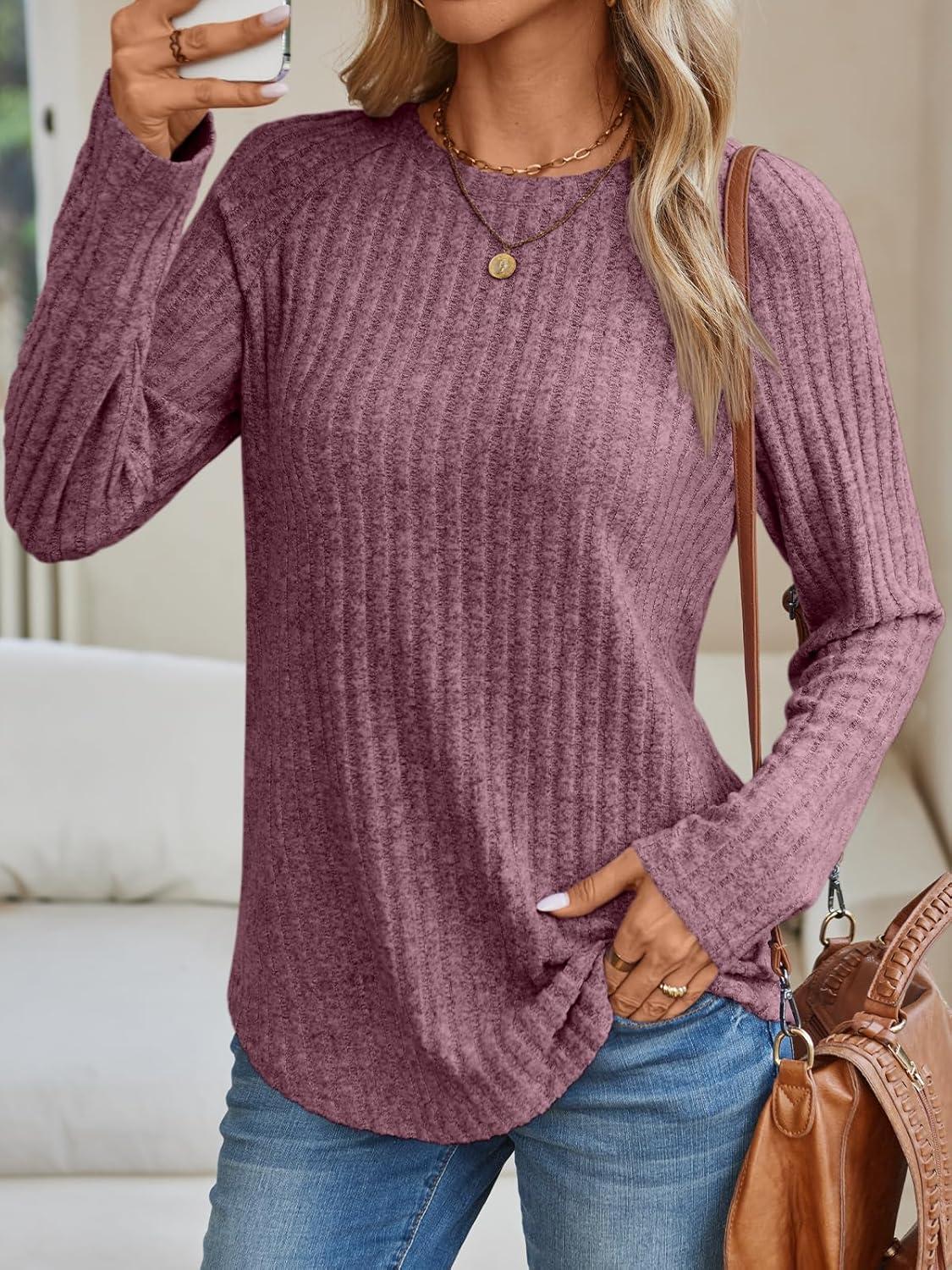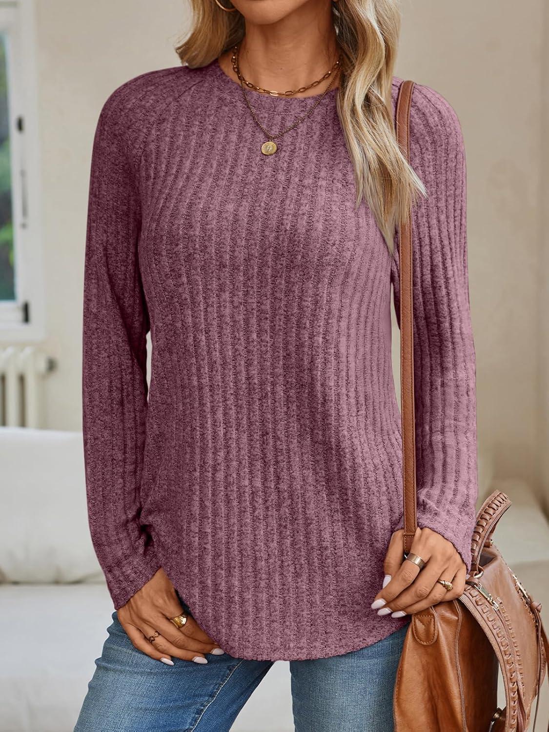 AUTOMET Womens Long Sleeve Shirts Fall Fashion Tops 2025 Crewneck Dressy Sweaters Tunic Winter Clothes Casual Outfits(Wine)