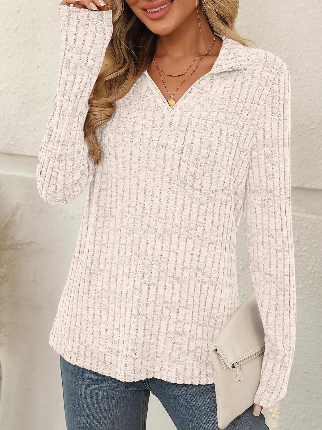 AUTOMET Womens Long Sleeve Shirts Fall Fashion Tops V Neck Tunic 2025 Dressy Casual Sweater Winter Clothes Trendy Outfits(Apricot)