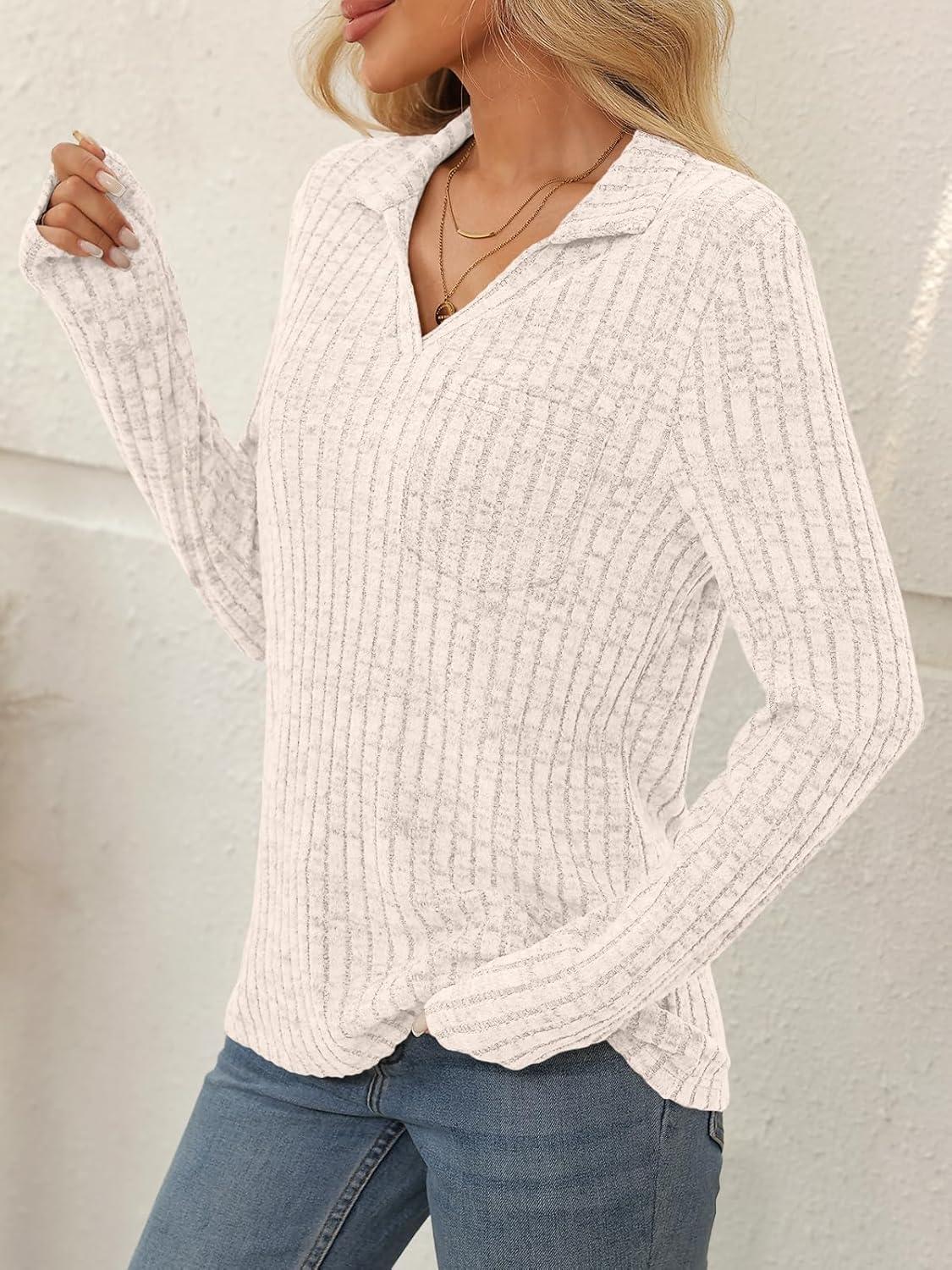 imageAUTOMET Womens Long Sleeve Shirts Fall Fashion Tops V Neck Tunic 2025 Dressy Casual Sweater Winter Clothes Trendy OutfitsApricot