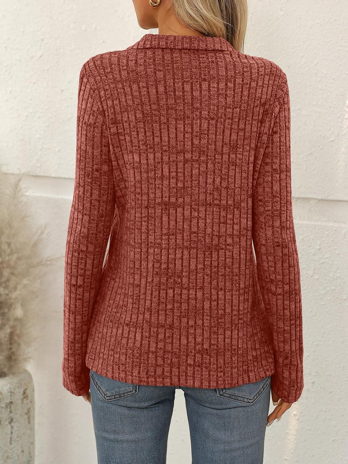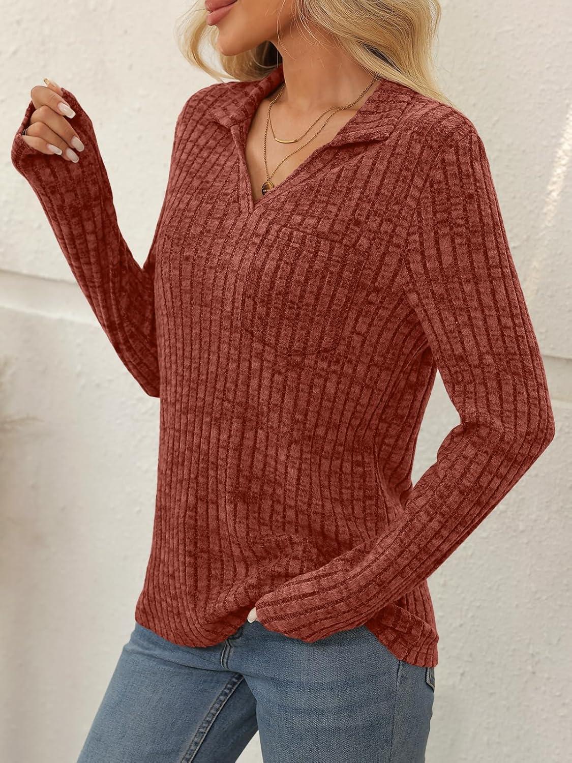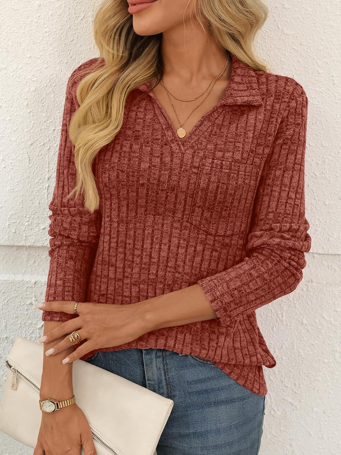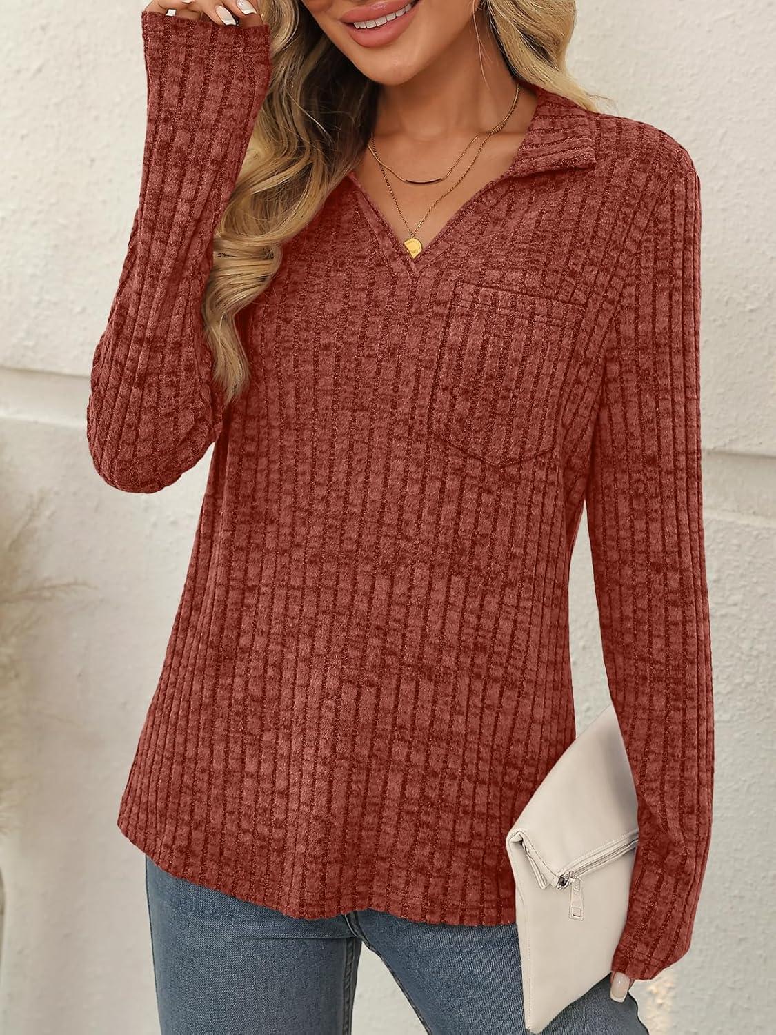 AUTOMET Womens Long Sleeve Shirts Fall Fashion Tops V Neck Tunic 2025 Dressy Casual Sweater Winter Clothes Trendy Outfits(Maple)