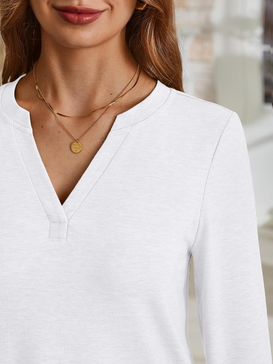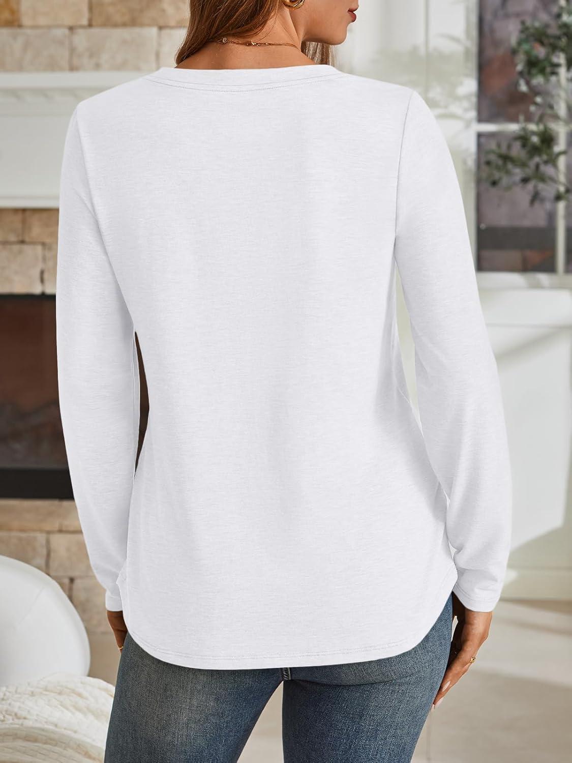 AUTOMET Womens Long Sleeve Shirts Fall Tops 2025 Henley Blouses Dressy Casual Business Basic Tees Trendy Cute T-Shirts(White)