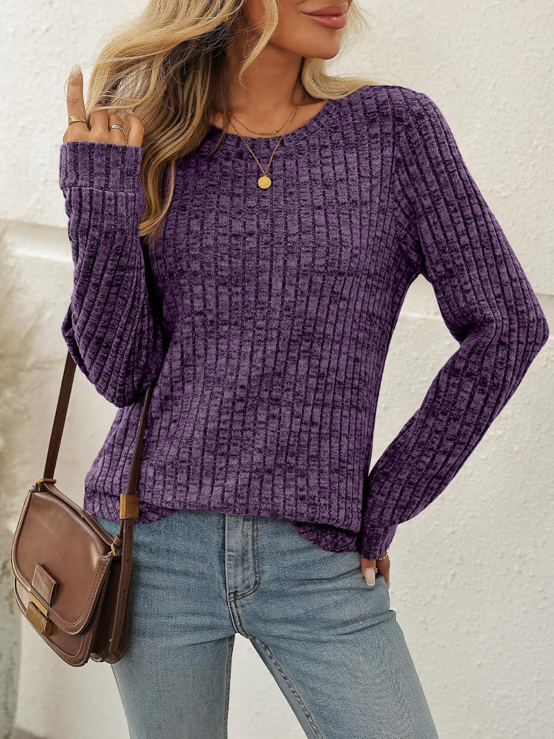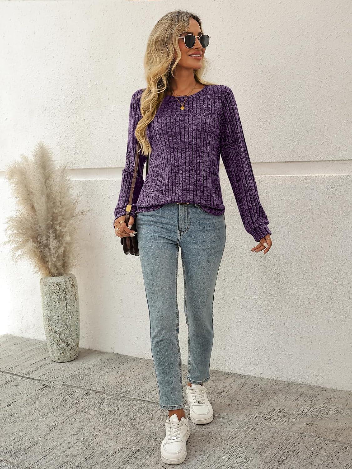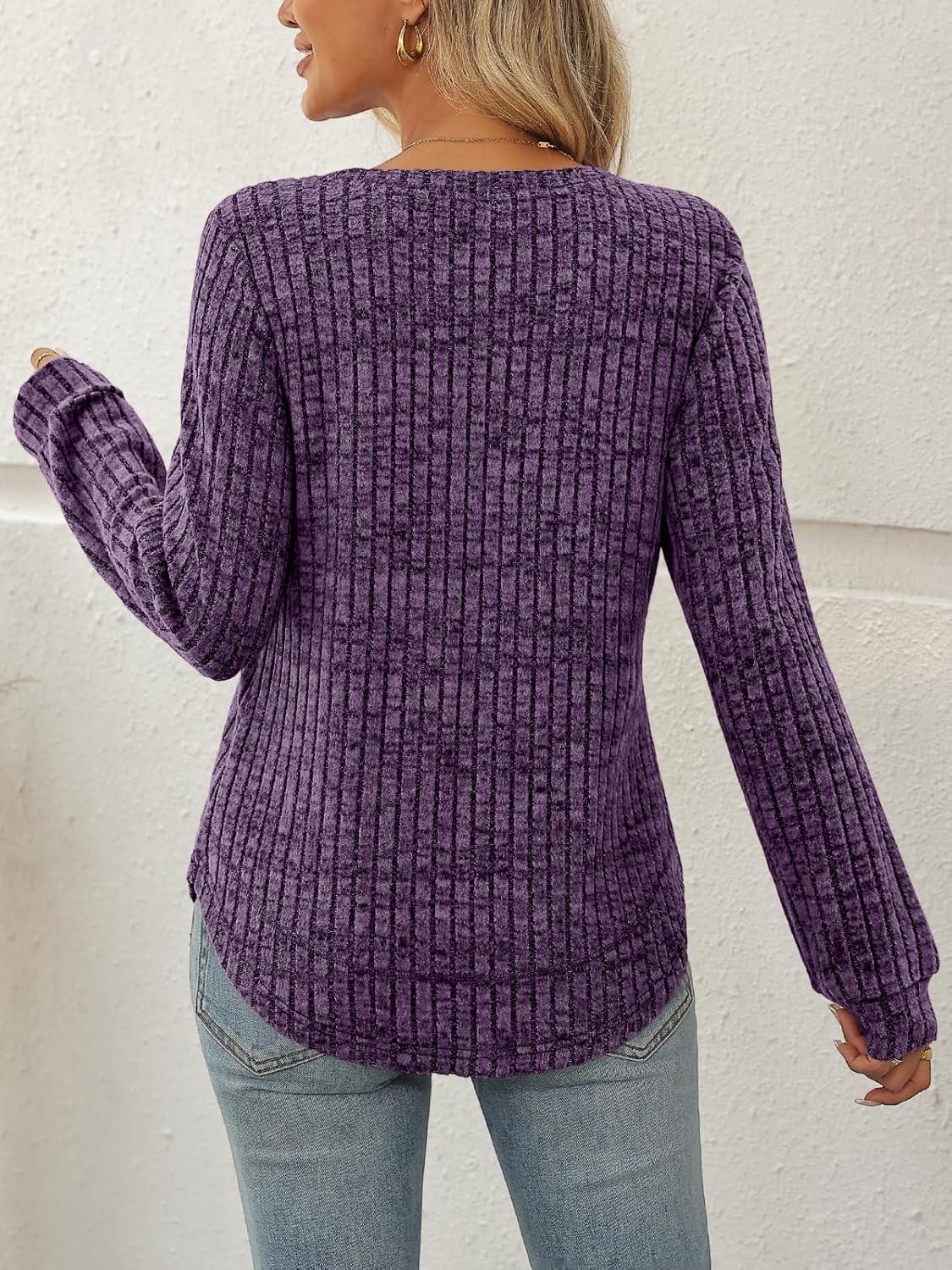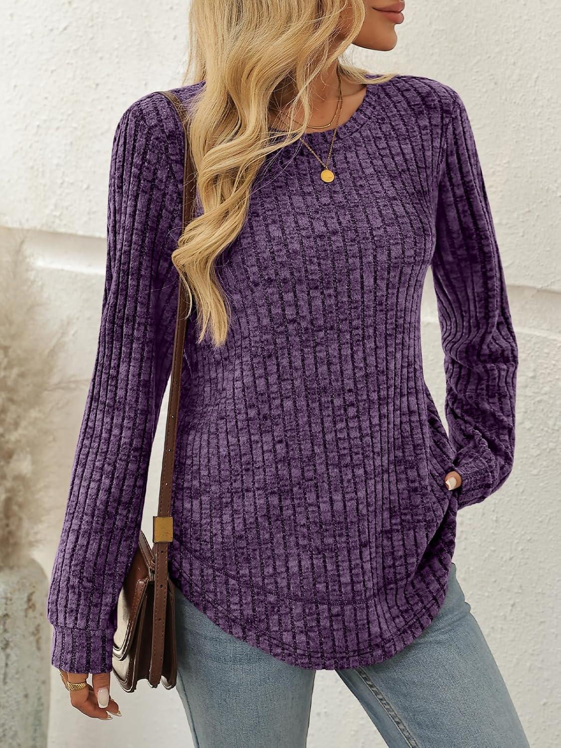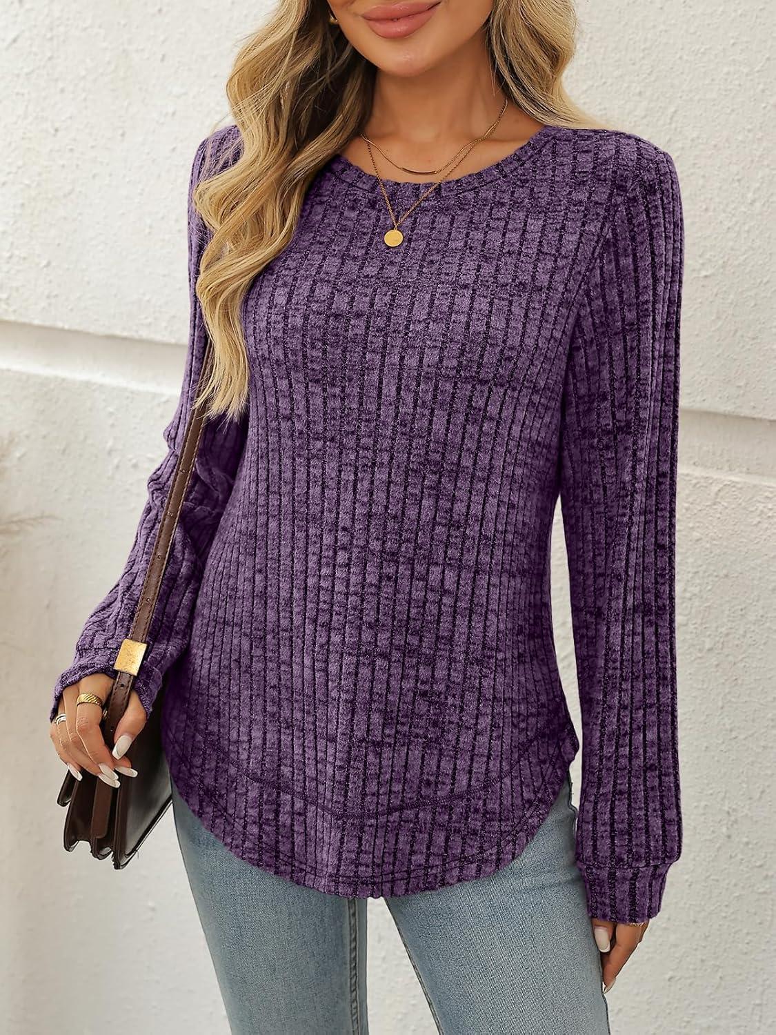 AUTOMET Womens Long Sleeve Shirts Fall Tops Tunic Fashion Outfits 2025 Dressy Casual Loose Fit Sweater Clothes Curved Hem(Purple)