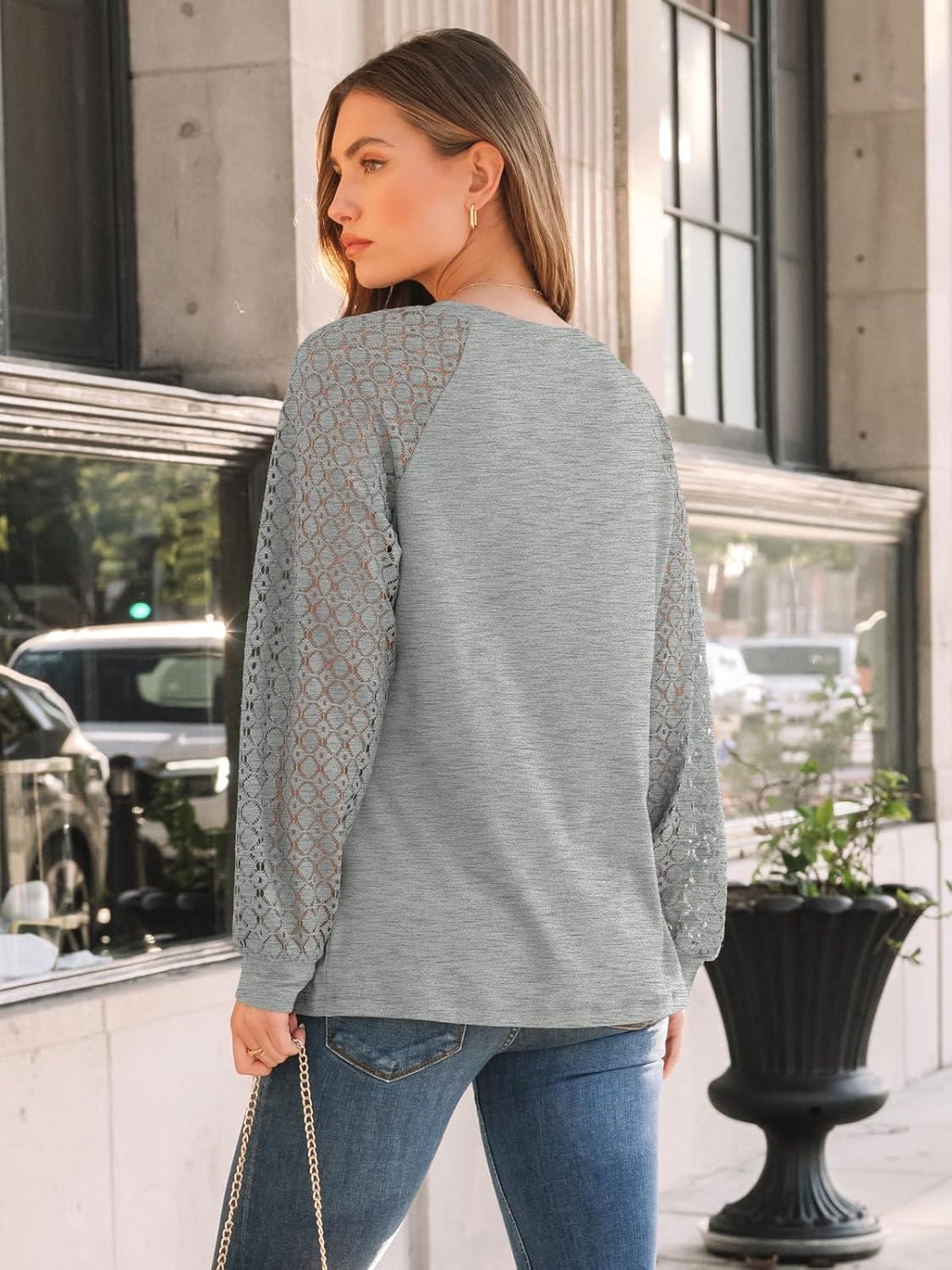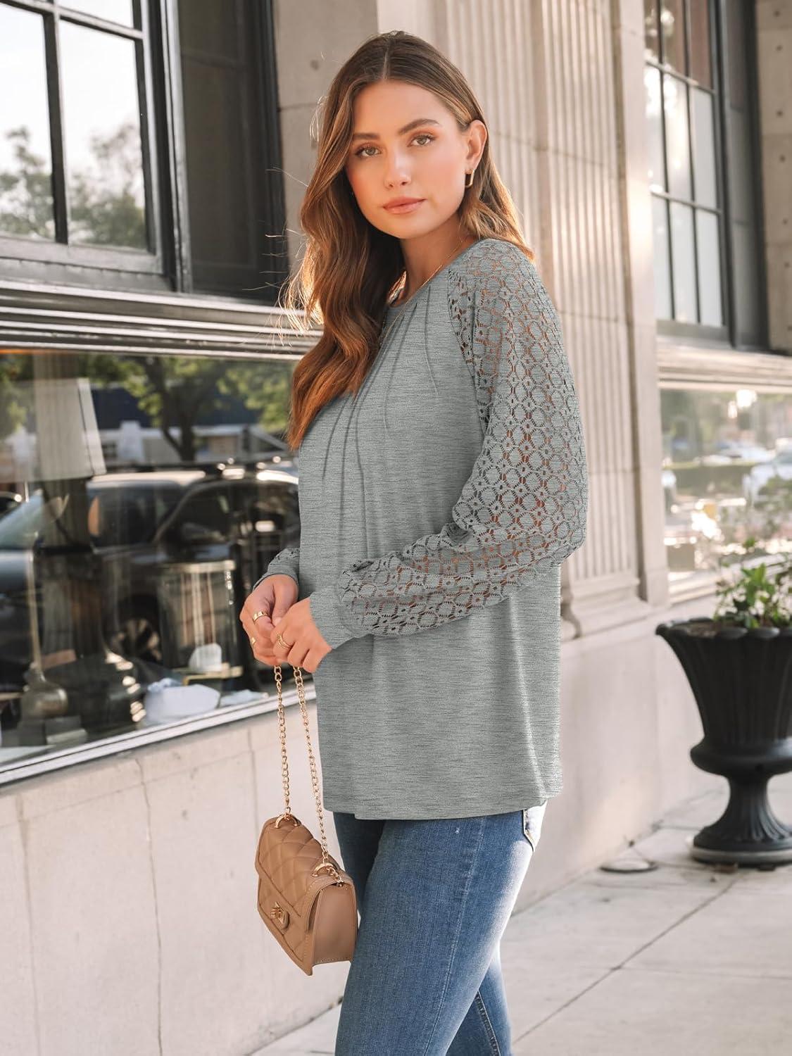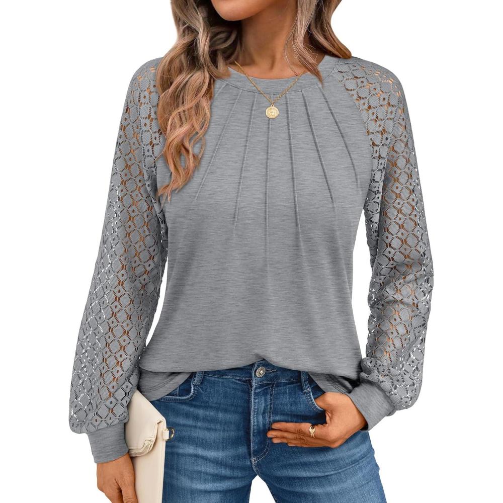 Get up to 50% off on AUTOMET Womens Long Sleeve Shirts Pleated Lace Tops Fall Fashion Outfits Business Casual Blouses(Grey) styles during our spring sale event.