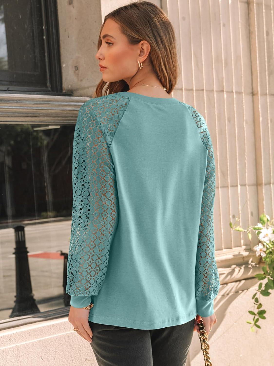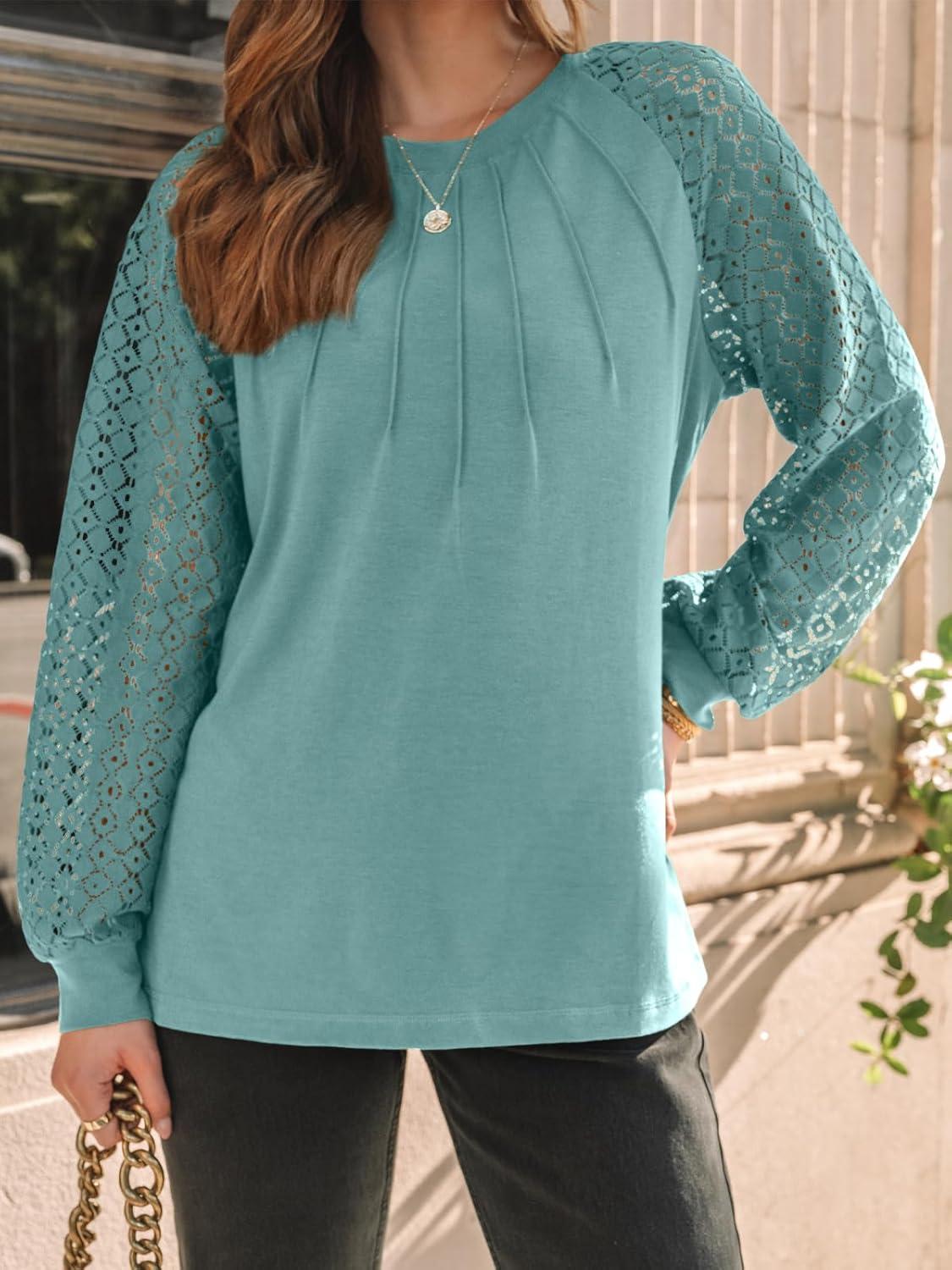 AUTOMET Womens Long Sleeve Shirts Pleated Lace Tops Fall Fashion Outfits Business Casual Blouses(Greygreen)