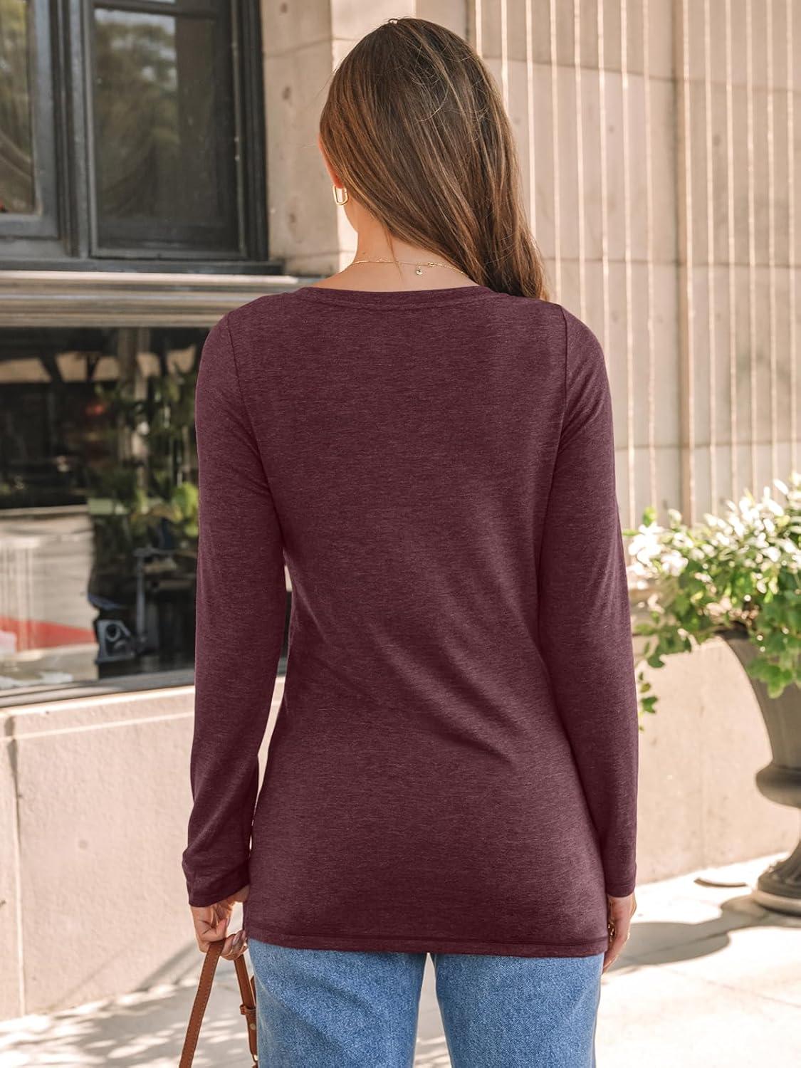 AUTOMET Womens Long Sleeve Shirts V Neck Casual Tops Loose Dressy Basic Fall Fashion Trendy Outfits Winter Clothes(Wine Red)
