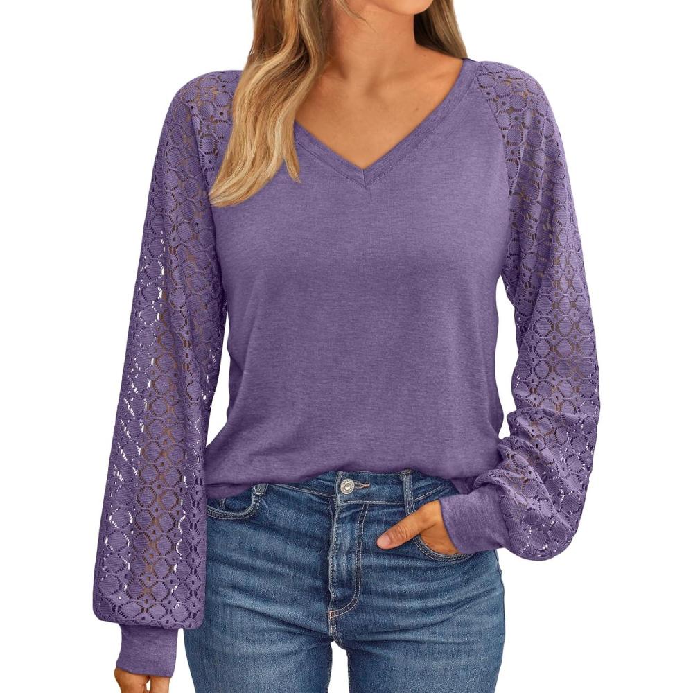 Get up to 50% off on AUTOMET Womens Long Sleeve Shirts V-Neck Lace Tops Business Casual Blouses Tee Trendy 2025 Fall Fashion Outfits Clothes(Greypurple) styles during our spring sale event.
