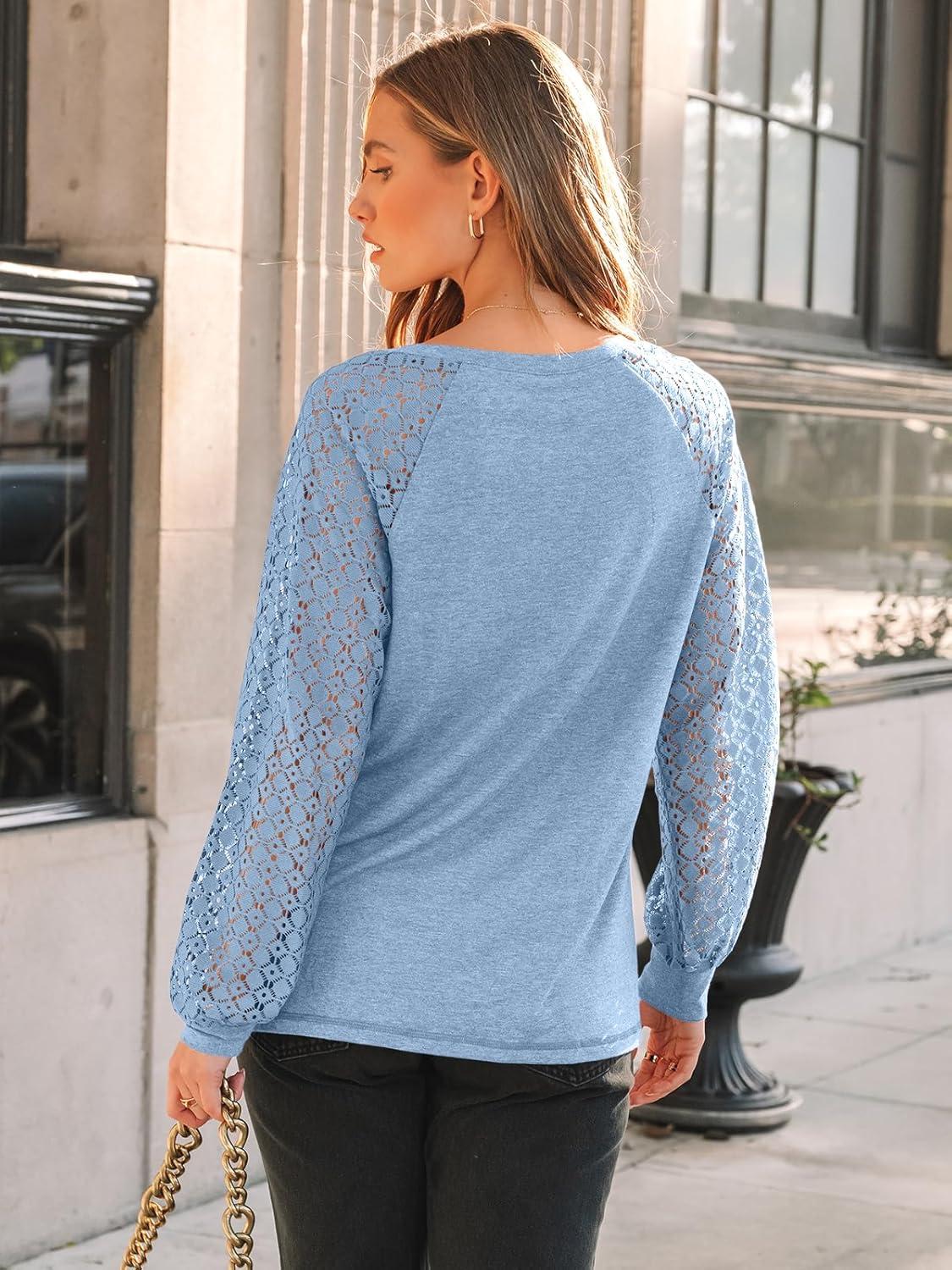 Don’t break the bank! Get the AUTOMET Womens Long Sleeve Shirts V-Neck Lace Tops Business Casual Blouses Tee Trendy 2025 Fall Fashion Outfits Clothes(Skyblue) you want at a price you can afford during our markdown sale.