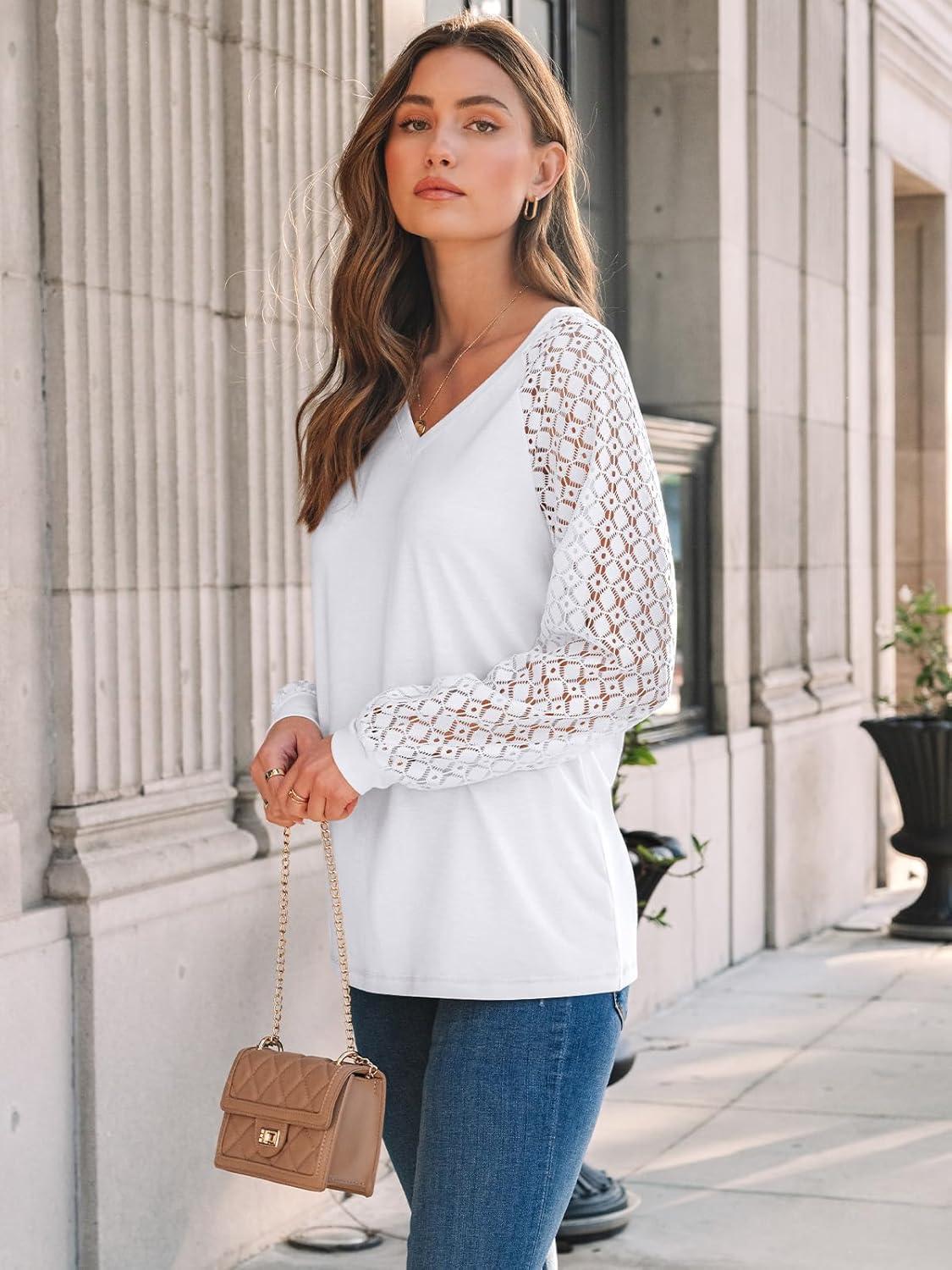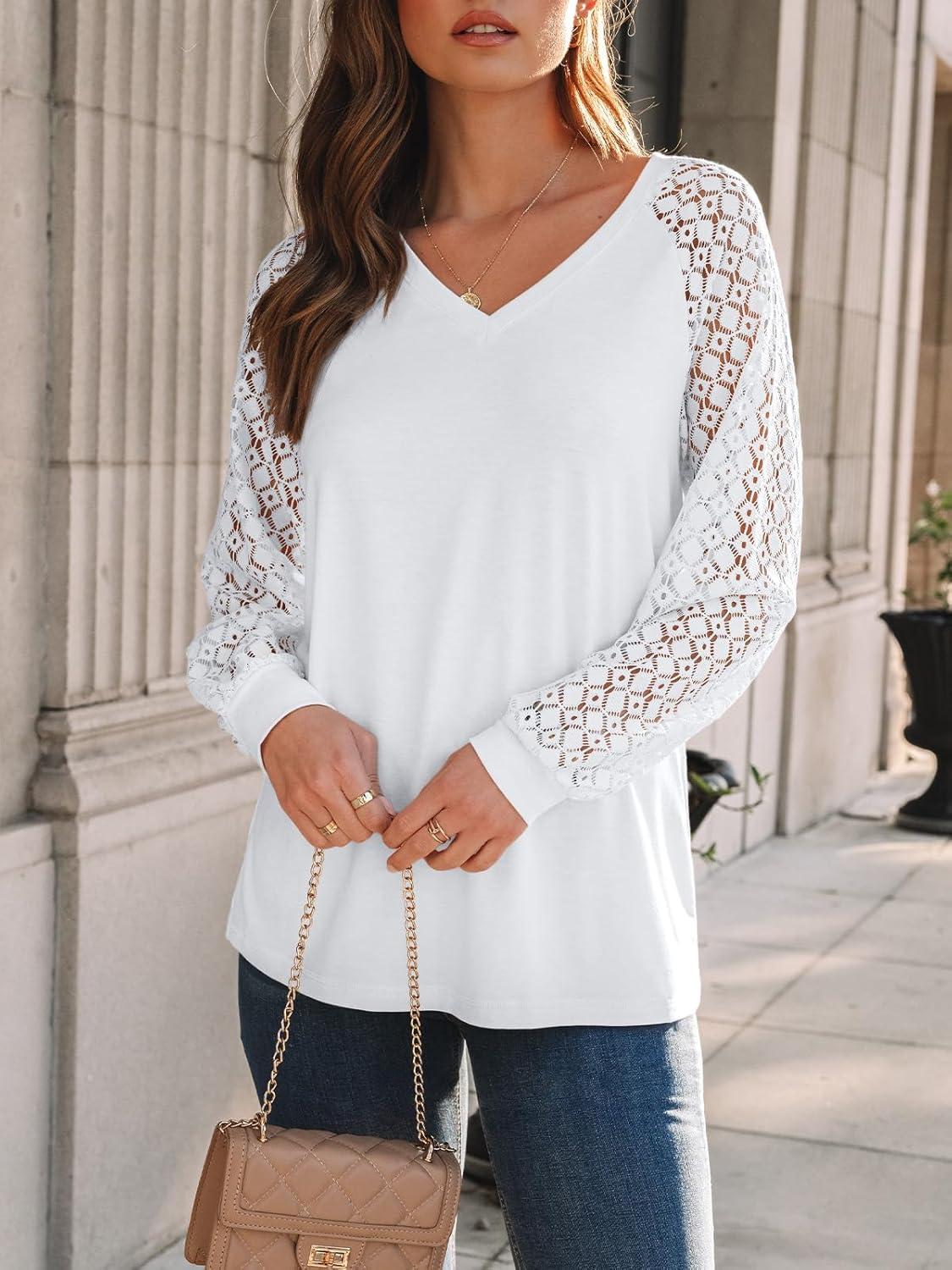 Don’t wait, get up to 50% off on AUTOMET Womens Long Sleeve Shirts V-Neck Lace Tops Business Casual Blouses Tee Trendy 2025 Fall Fashion Outfits Clothes(White) during our end-of-season sale event.