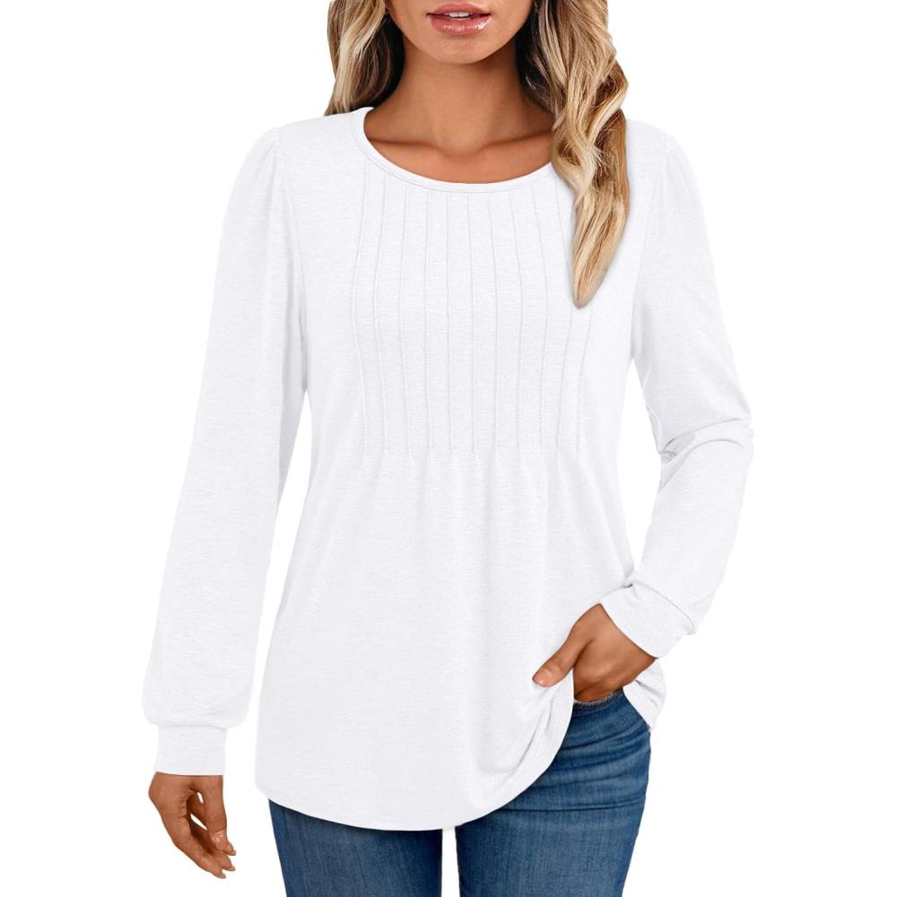 AUTOMET Womens Long Sleeve T-Shirts Dressy Business Casual Tops Tunic Fall Fashion Crewneck Blouse Trendy Winter Outfits 2025(White)