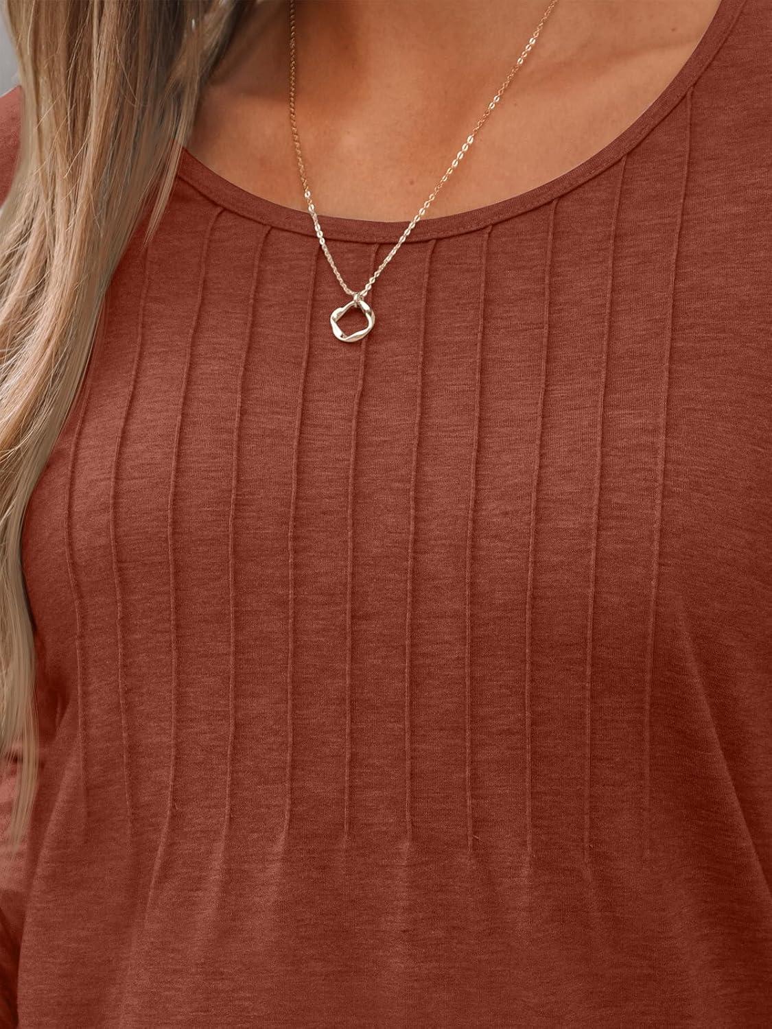 AUTOMET Womens Long Sleeve Tops Business Casual Crewneck Pleated Shirts Fall Fashion 2025 Blouses Trendy Basic Loose Outfits(Maple)