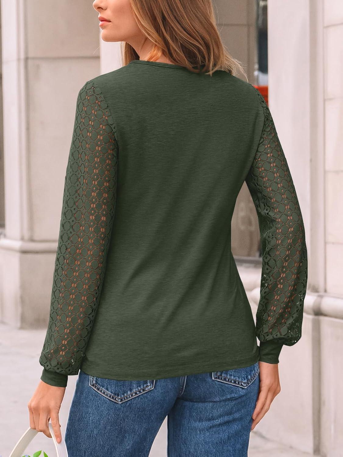 AUTOMET Women's Long Sleeve Tops Dressy Casual Shirts 2025 Fall Outfits Lace Business Blouses Cute T-Shirts Work Clothes(Army Green)