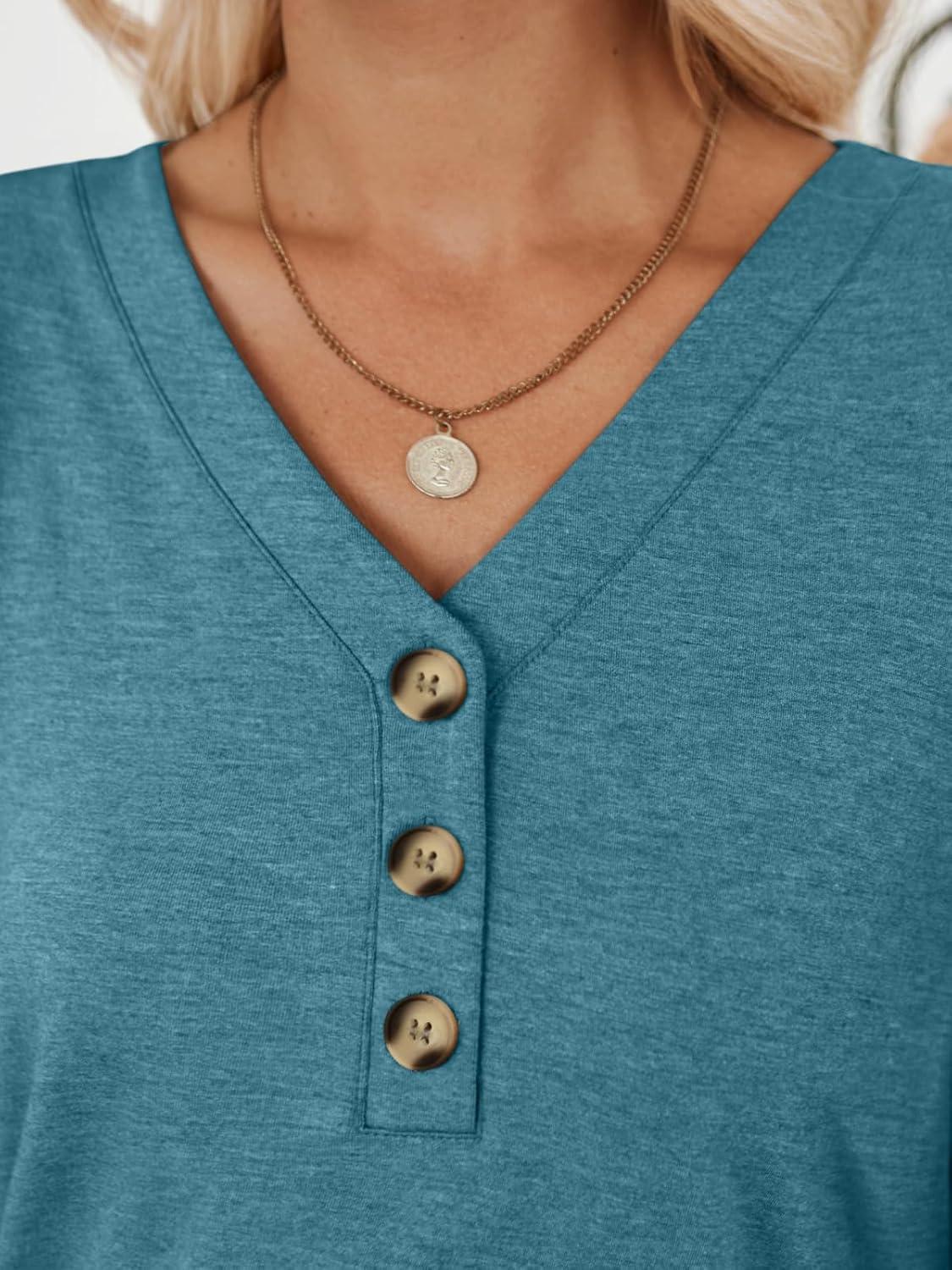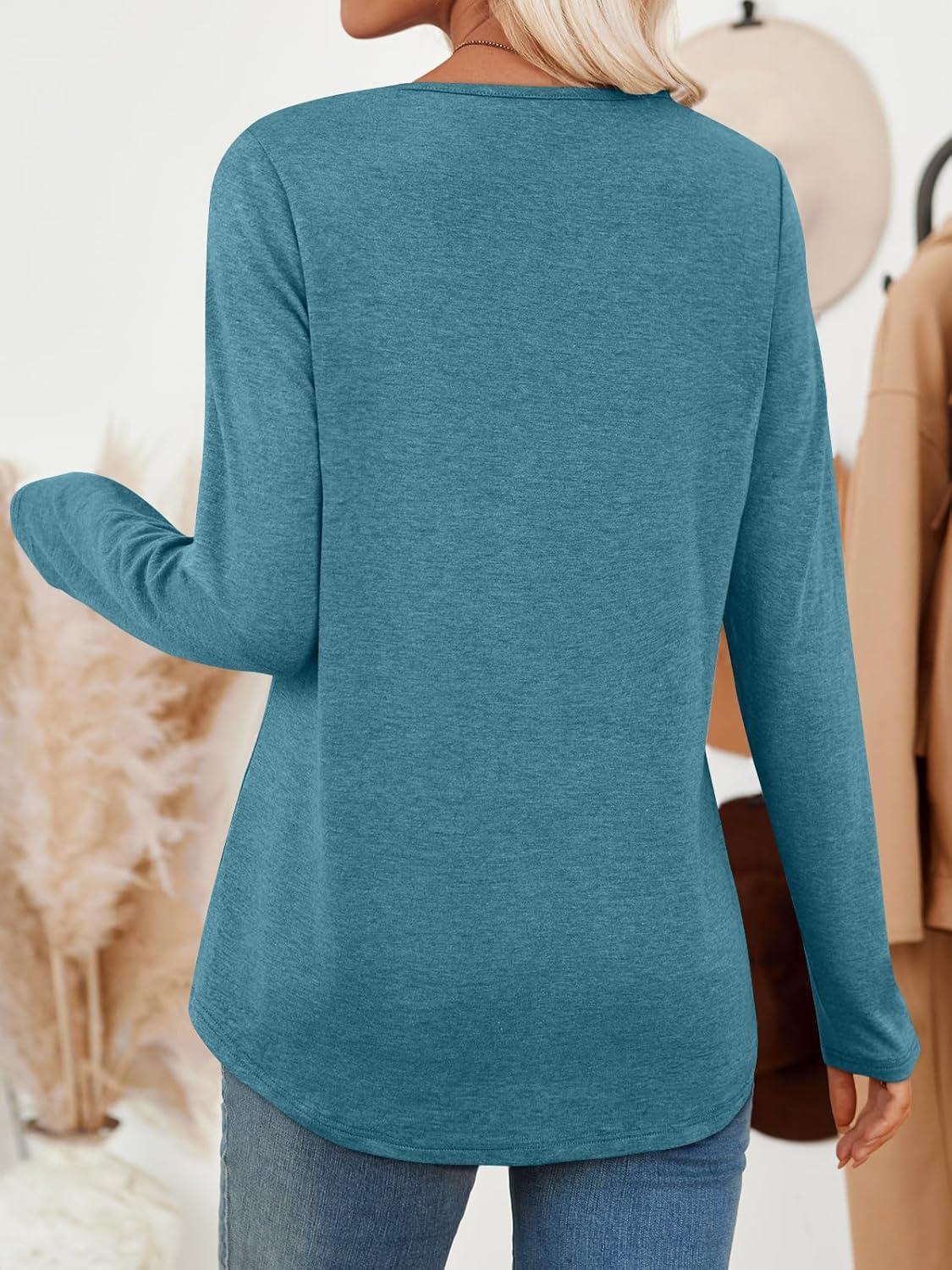 AUTOMET Womens Long Sleeve Tops Fall Fashion Dressy Casual Shirts V Neck T-Shirts Tunic Lightweight Outfits Clothes 2025(Teal)