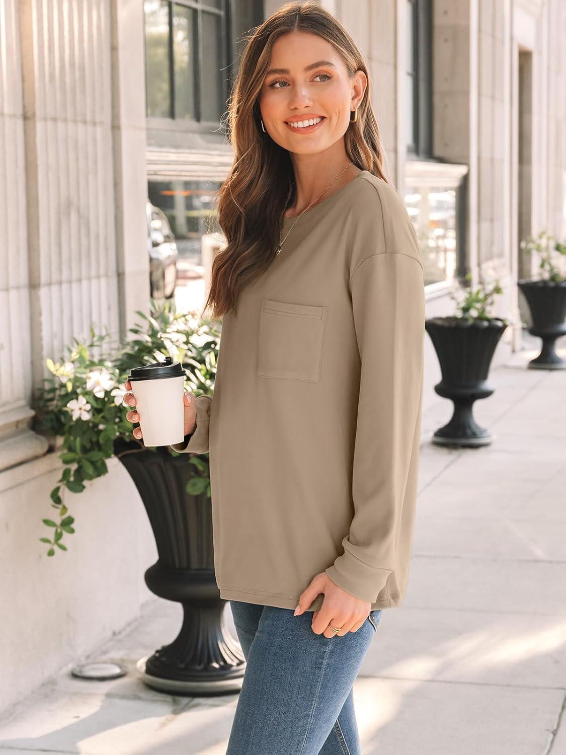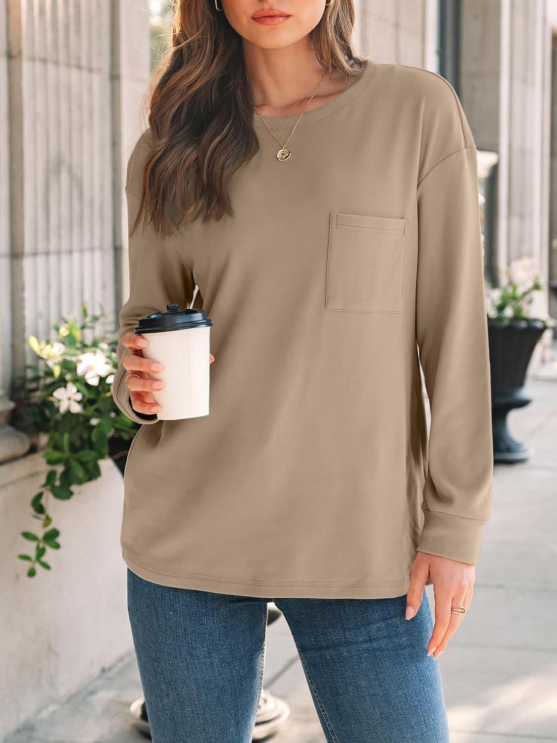 AUTOMET Womens Long Sleeve Tops Loose Fit Fall Cute Thick T Shirts Winter Cruise Outfits Trendy Clothes(Caramel)