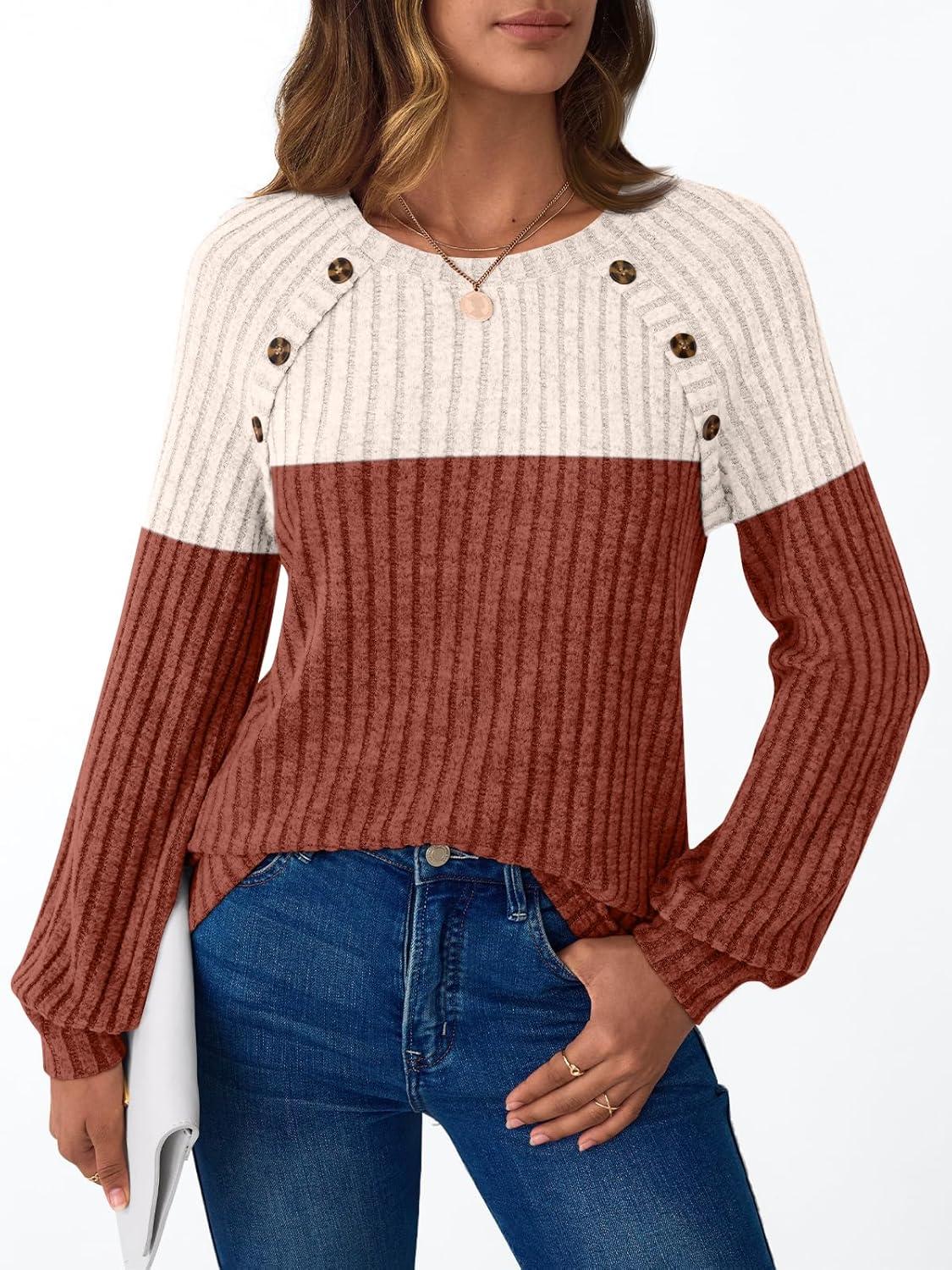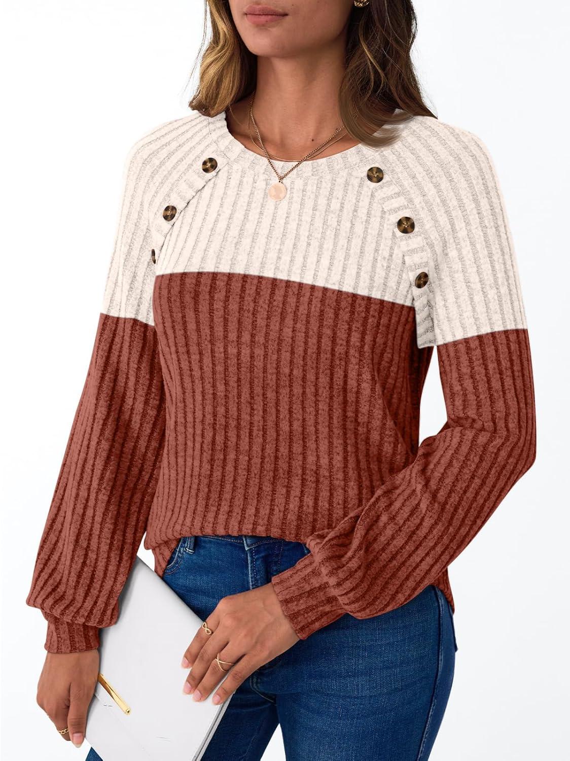 AUTOMET Womens Long Sleeve Tshirts Casual Tunic Work Tops Cute Pullover Sweaters Fall Travel Outfits 2025 Dressy Blouses(Apricot Brown)