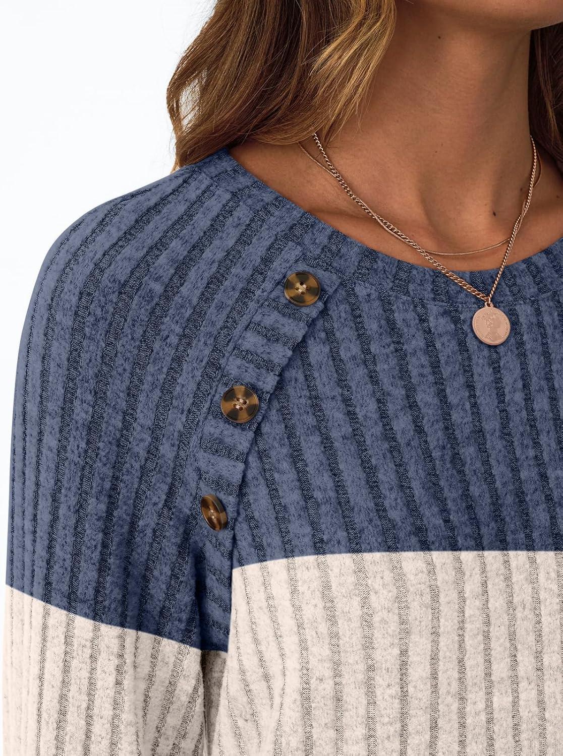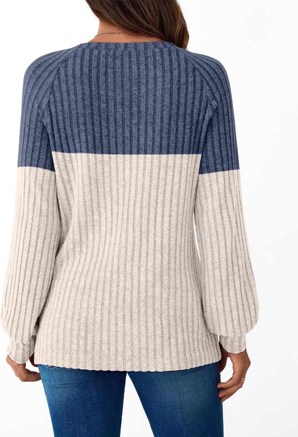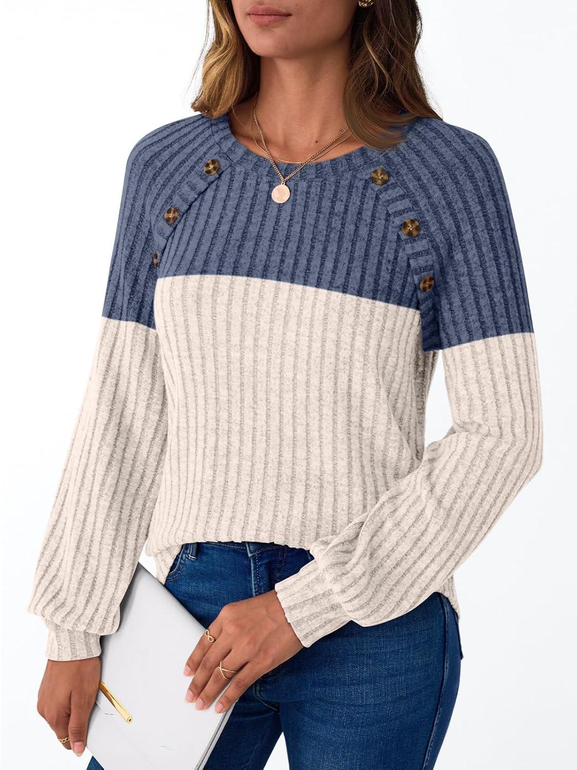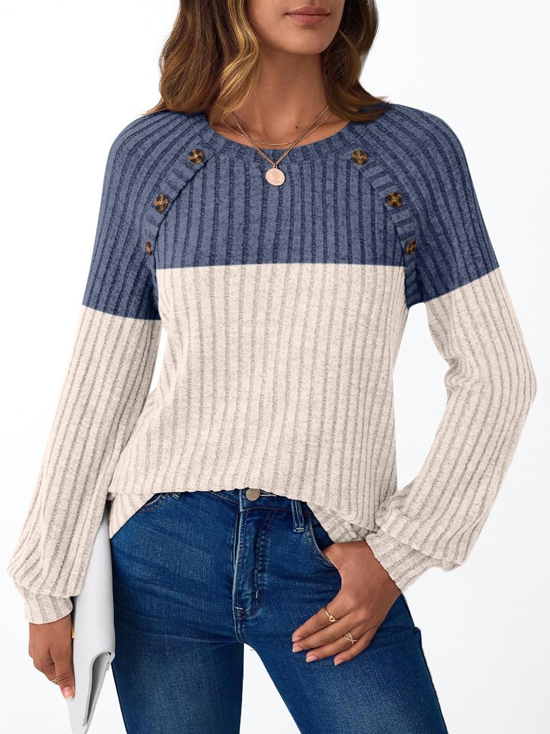 AUTOMET Womens Long Sleeve Tshirts Casual Tunic Work Tops Cute Pullover Sweaters Fall Travel Outfits 2025 Dressy Blouses(Blue Apricot)