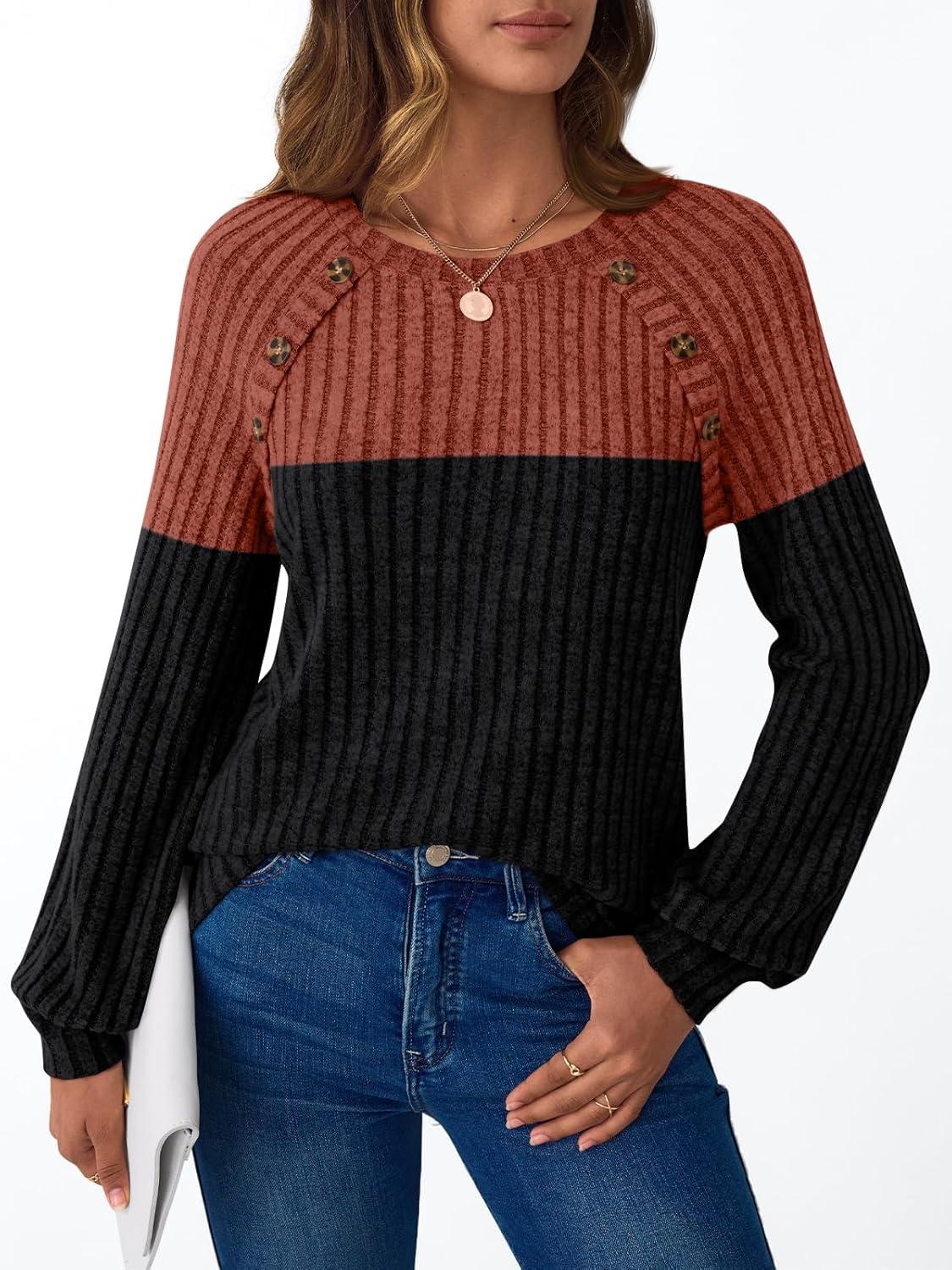 AUTOMET Womens Long Sleeve Tshirts Casual Tunic Work Tops Cute Pullover Sweaters Fall Travel Outfits 2025 Dressy Blouses(Caramel Black)