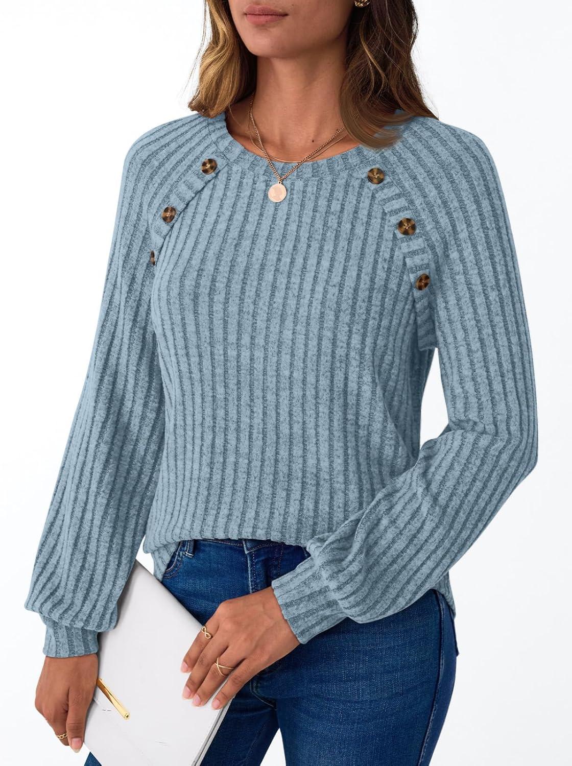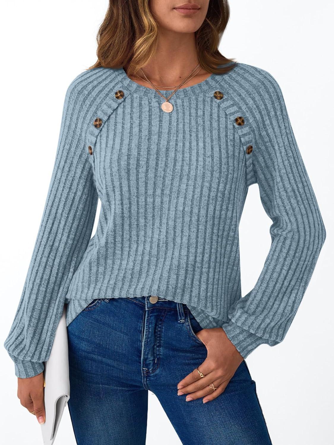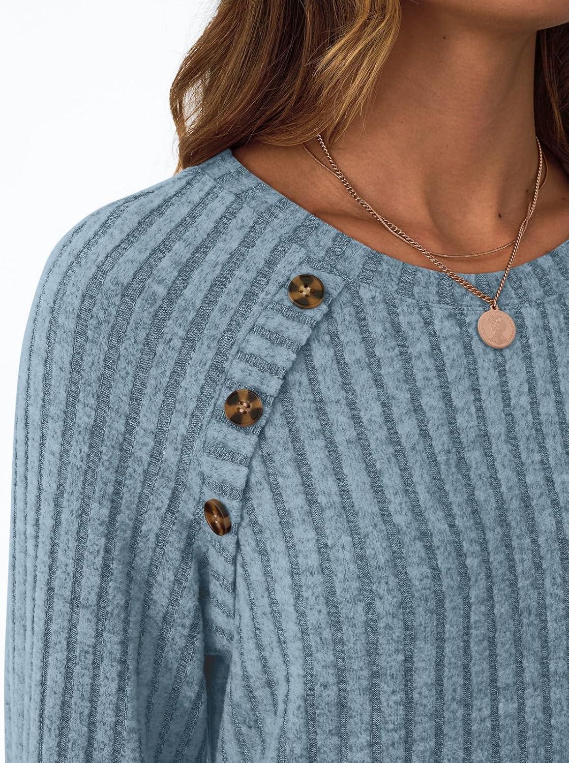 AUTOMET Womens Long Sleeve Tshirts Casual Tunic Work Tops Cute Pullover Sweaters Fall Travel Outfits 2025 Dressy Blouses(Dusty Blue)
