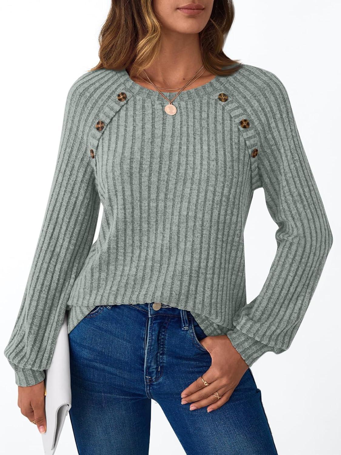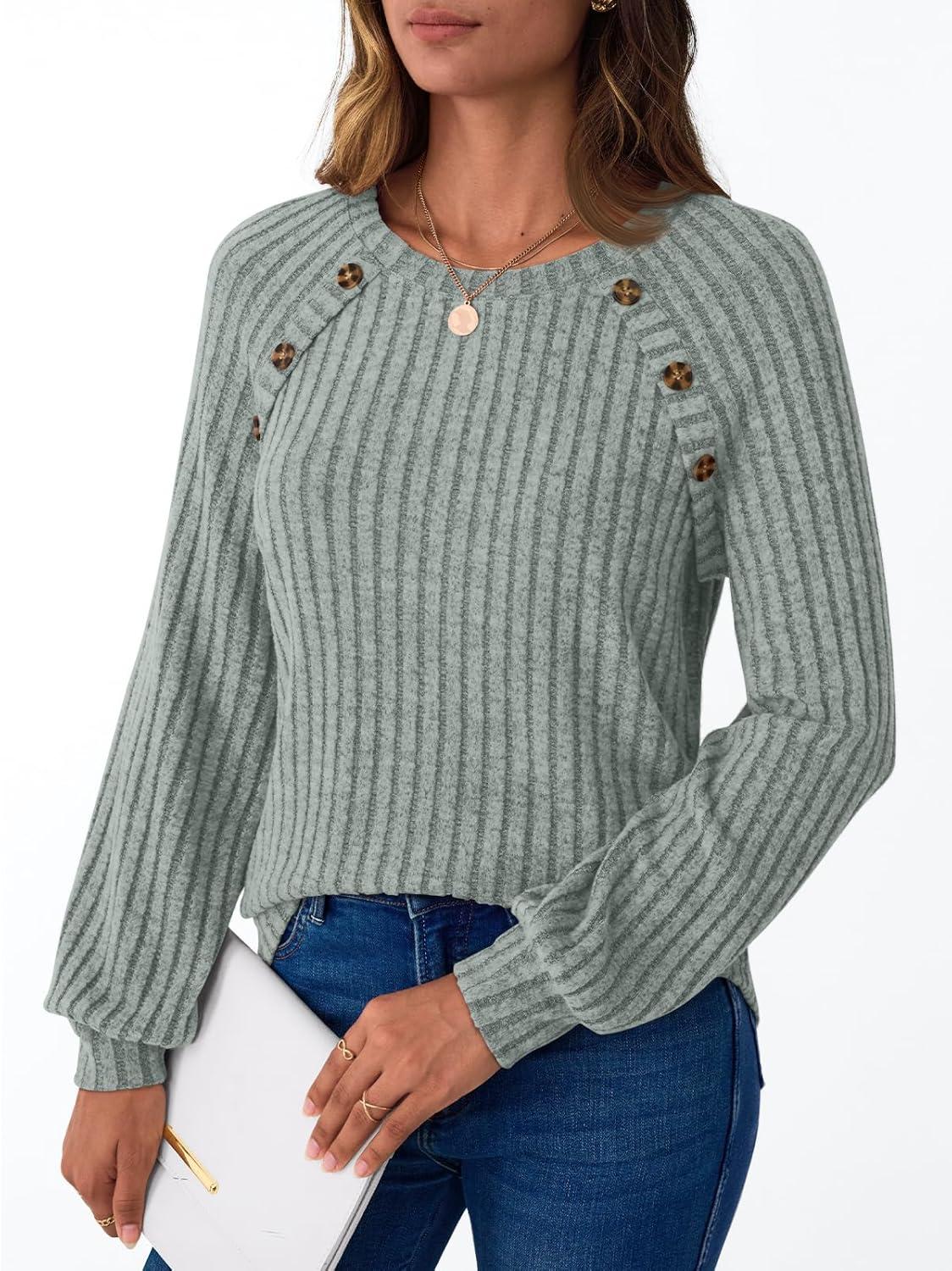 AUTOMET Womens Long Sleeve Tshirts Casual Tunic Work Tops Cute Pullover Sweaters Fall Travel Outfits 2025 Dressy Blouses(Grey Green)
