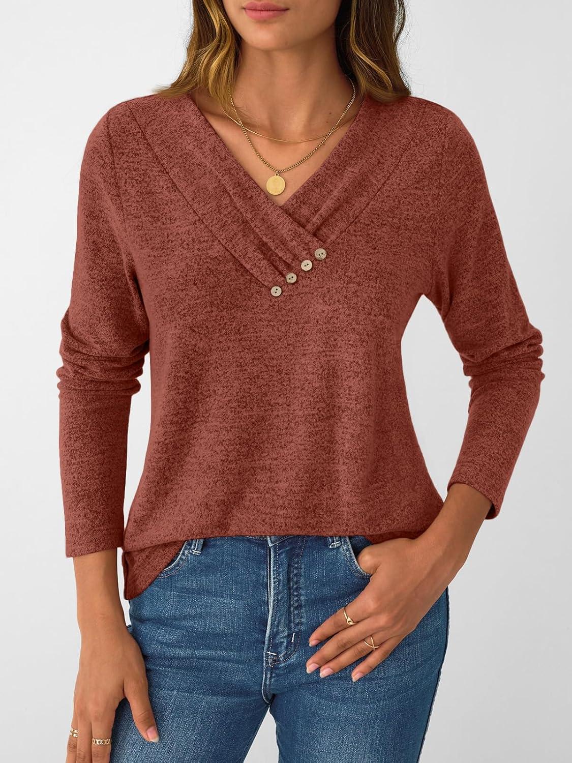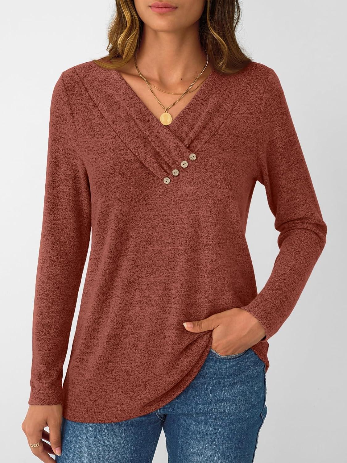 Discover the latest AUTOMET Womens Long Sleeve Tunic Top V Neck Button Shirts 2025 Dressy Casual Business Blouses(Caramel) from and take advantage of our limited-time introductory offer.