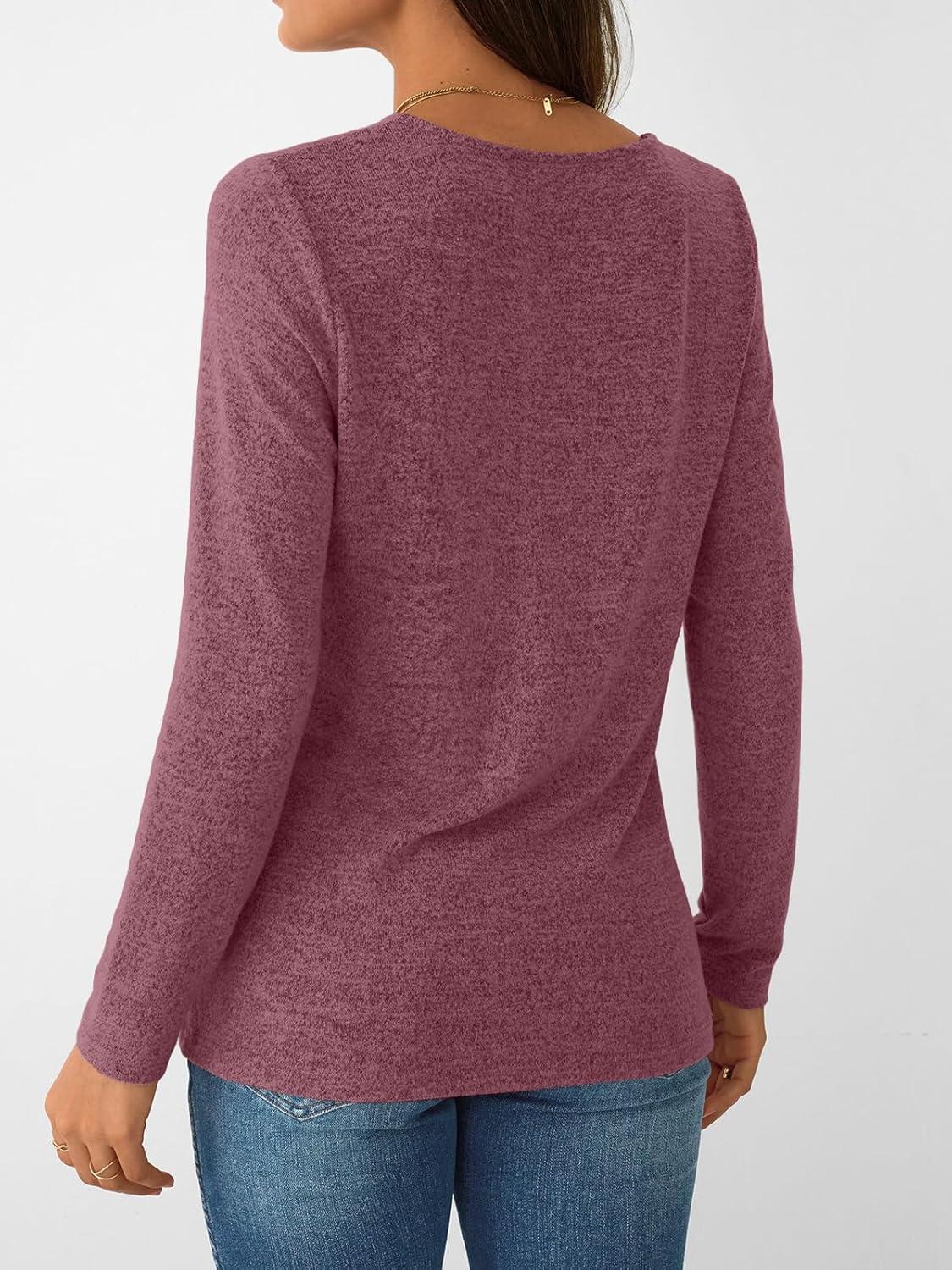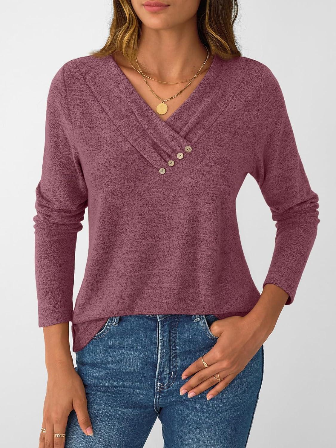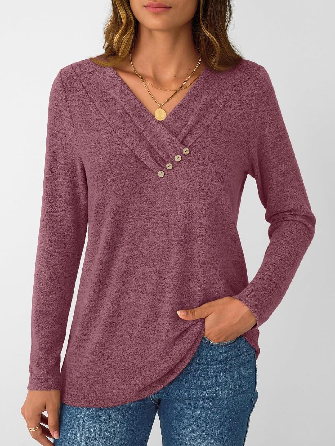 AUTOMET Womens Long Sleeve Tunic Top V Neck Button Shirts 2025 Dressy Casual Business Blouses(Purplered)