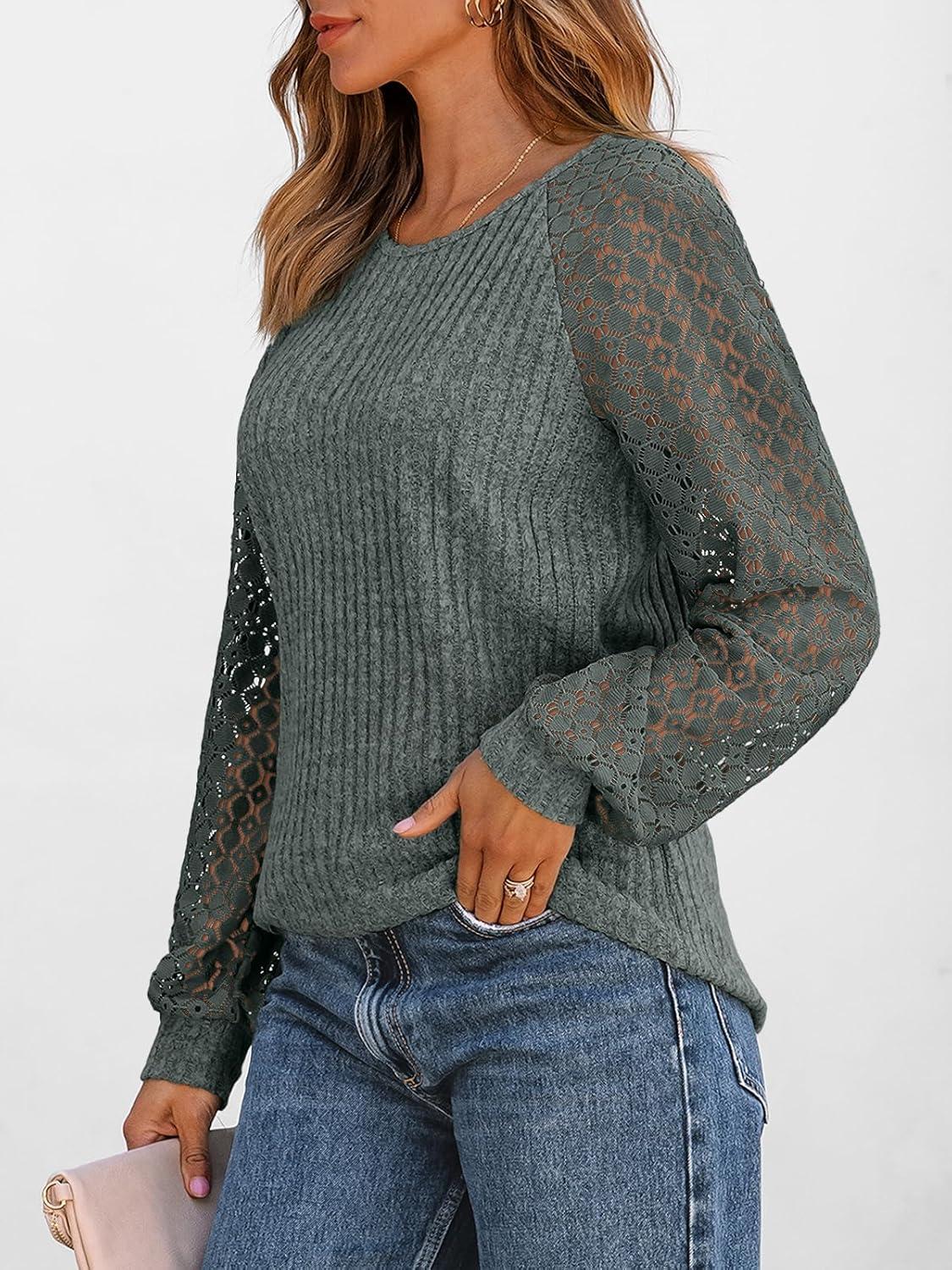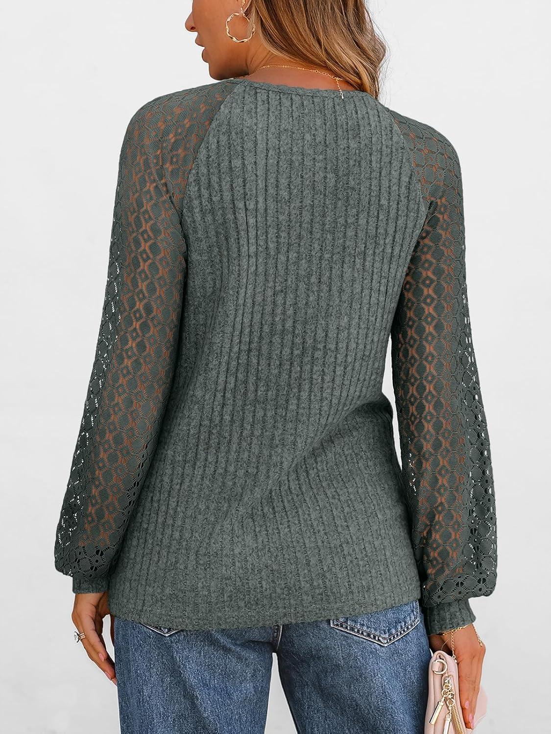 imageAUTOMET Womens Long Sleeve Work Shirts Lace Trendy Dressy Tops Fall Fashion Lightweight Sweaters Business Casual BlousesArmygreen