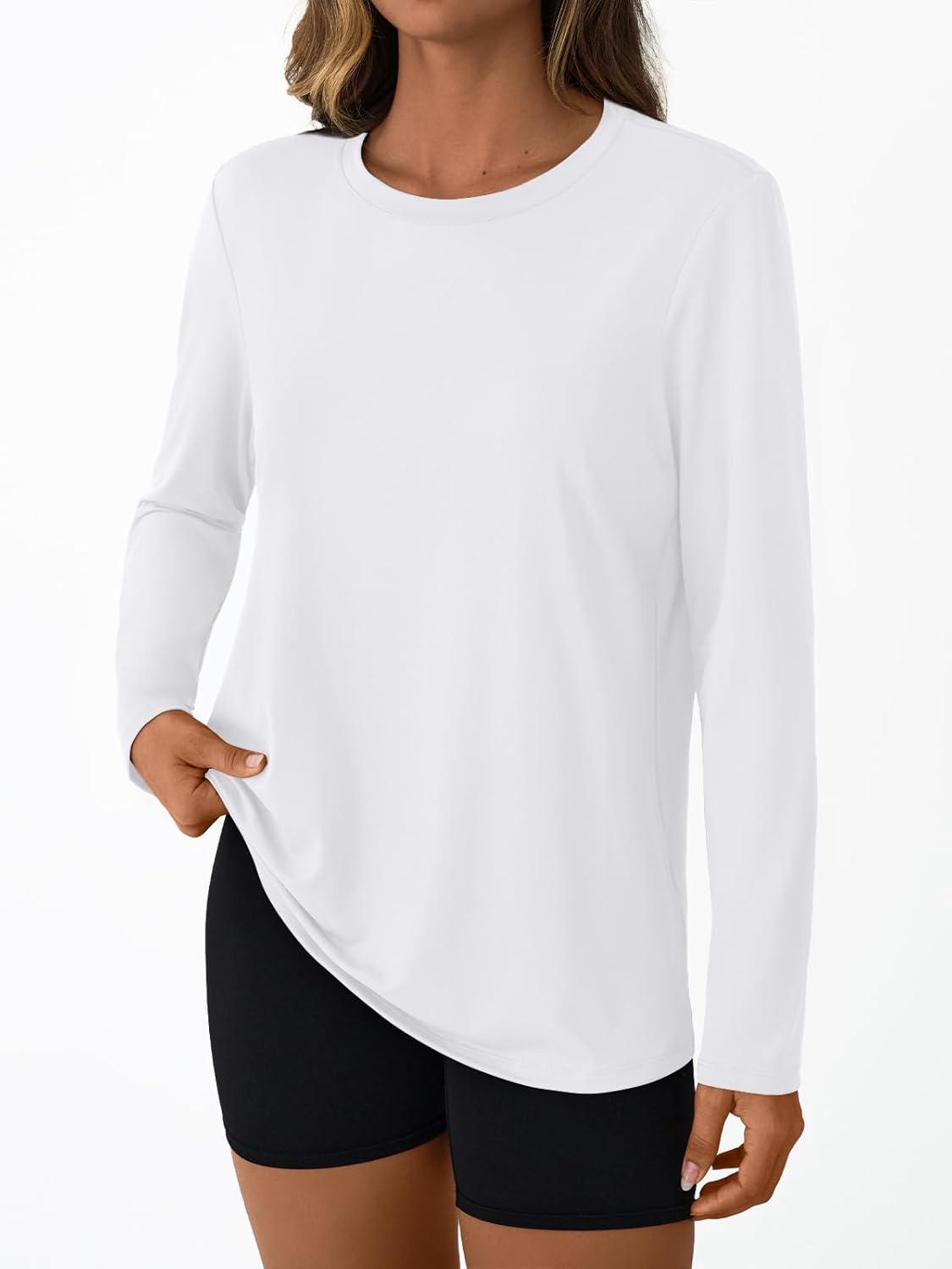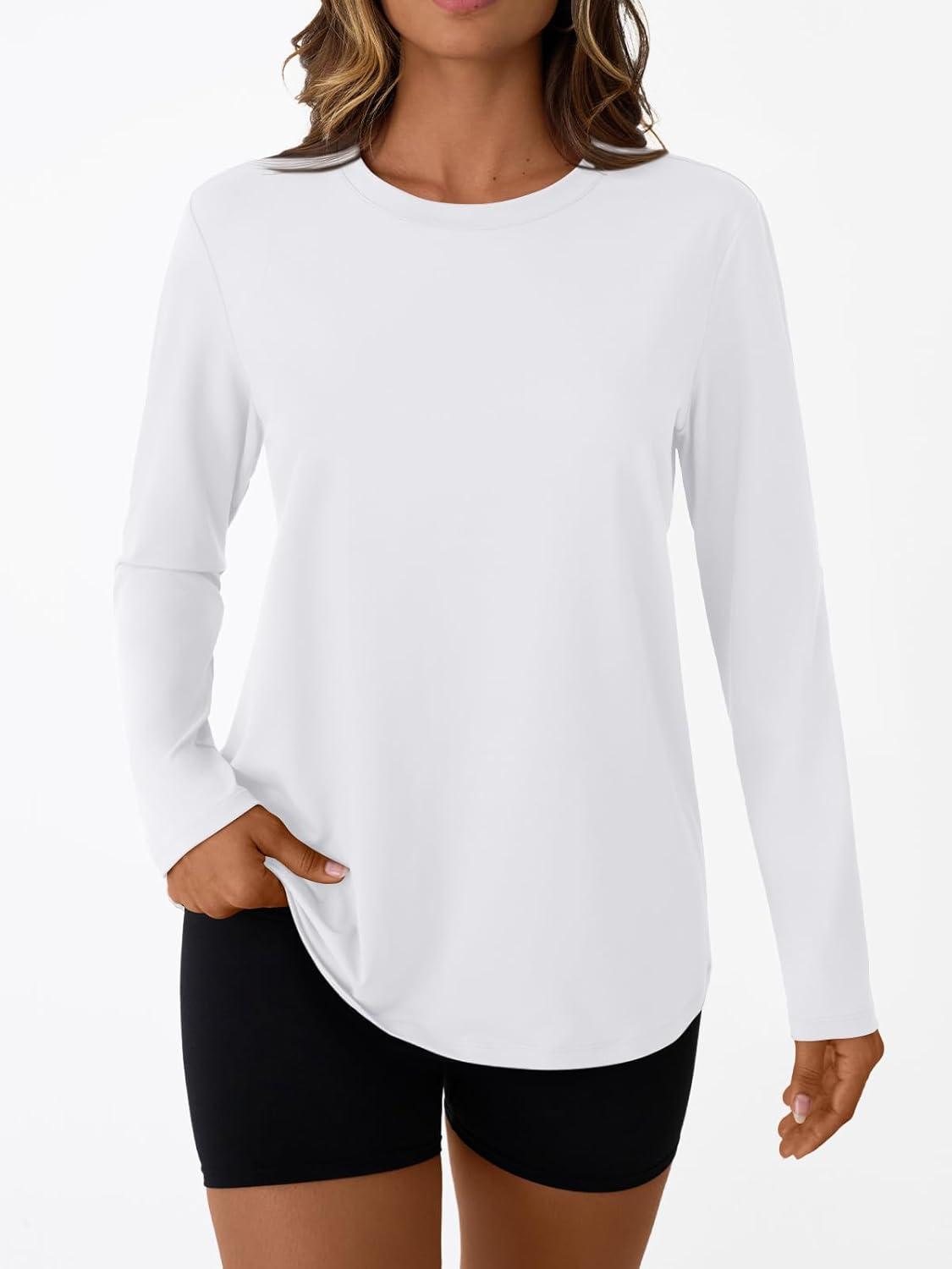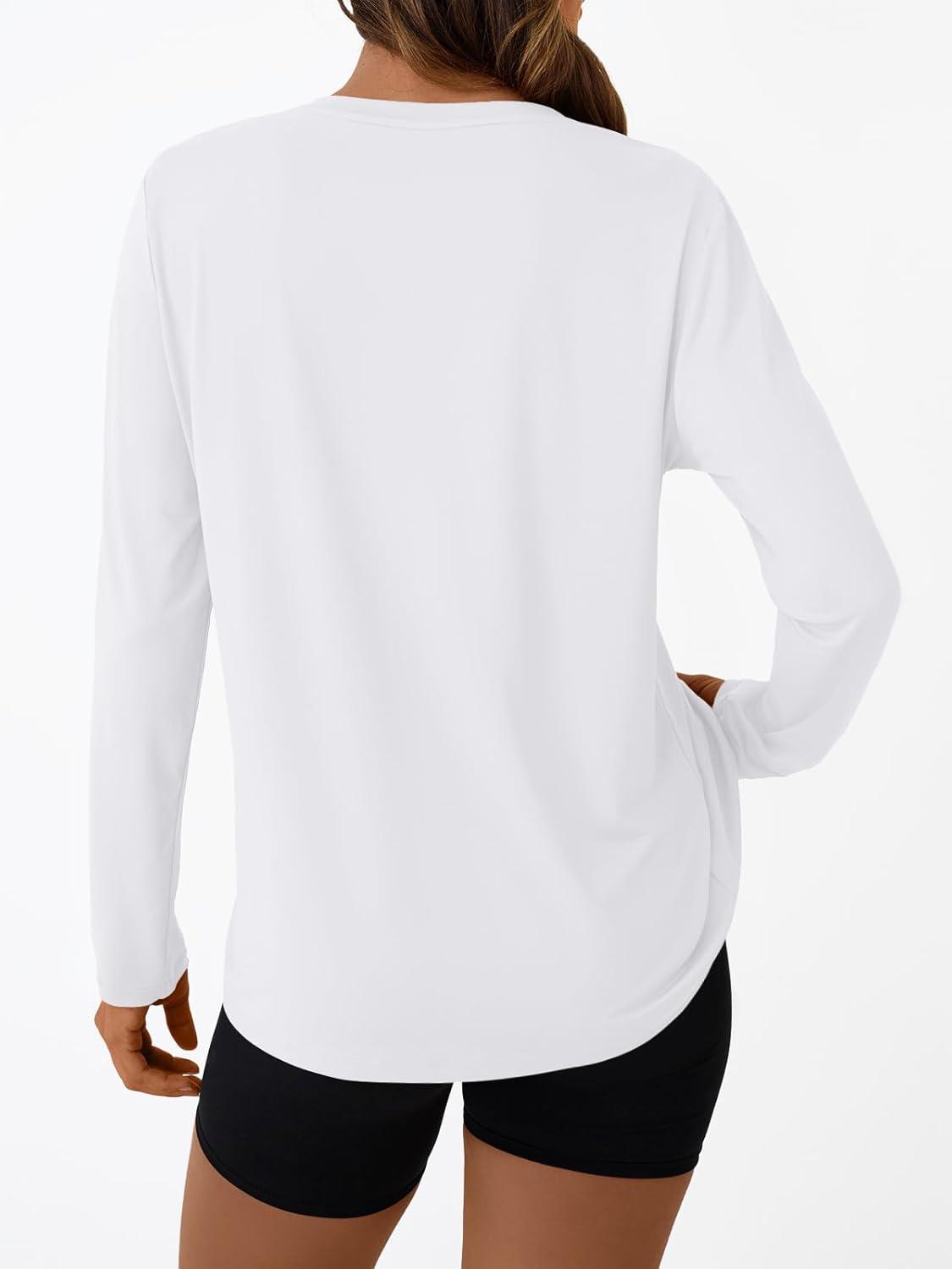 AUTOMET Women’s Long Sleeve Workout Tops 2025 Fall Sports Sun Shirts Swim Hiking Gym Tshirts UPF 50+ Rash Guard UV Clothes(White)