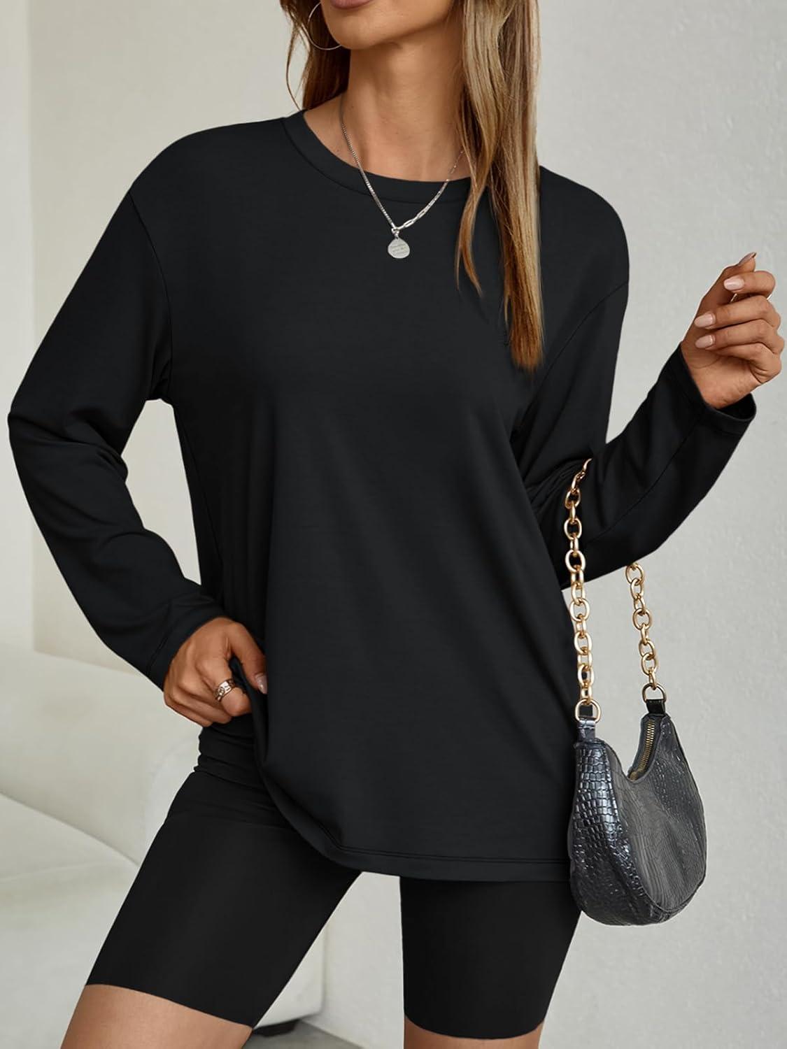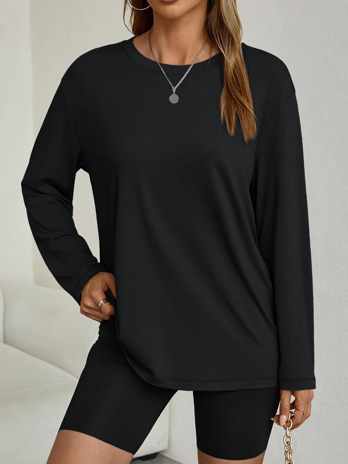 AUTOMET Women's Oversized Long Sleeve Shirts Fall Trendy Tops Fashion Gym Baggy Basic Casual Loose Fit Workout Y2k Clothes(Black)