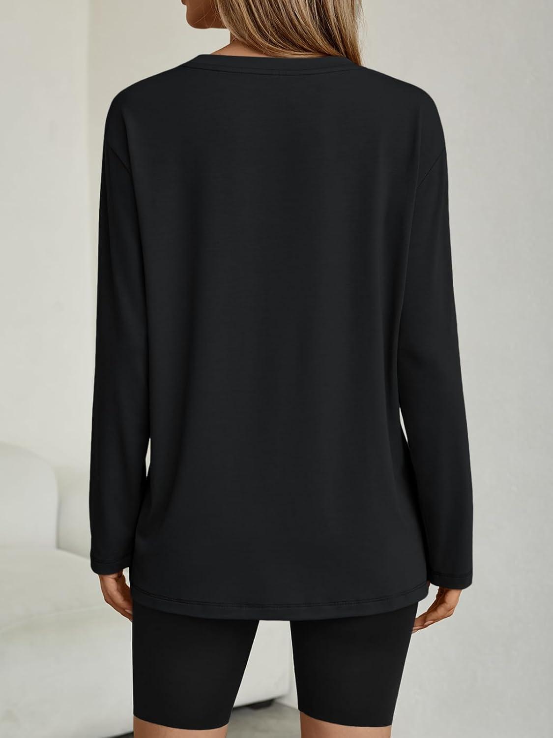AUTOMET Women’s Oversized Long Sleeve Shirts Fall Trendy Tops Fashion Gym Baggy Basic Casual Loose Fit Workout Y2k Clothes(Black)