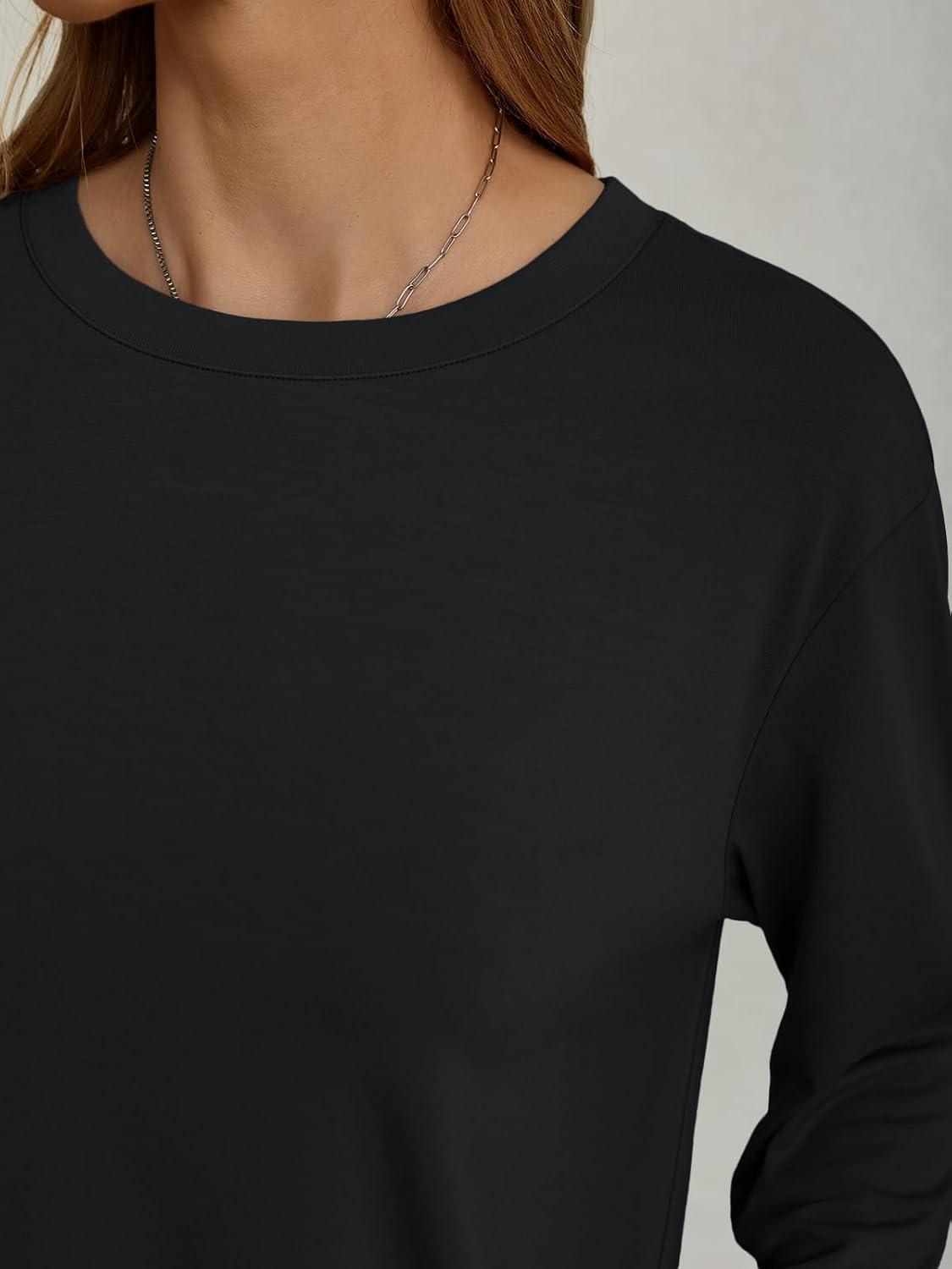 imageAUTOMET Womens Oversized Long Sleeve Shirts Fall Trendy Tops Fashion Gym Baggy Basic Casual Loose Fit Workout Y2k ClothesBlack