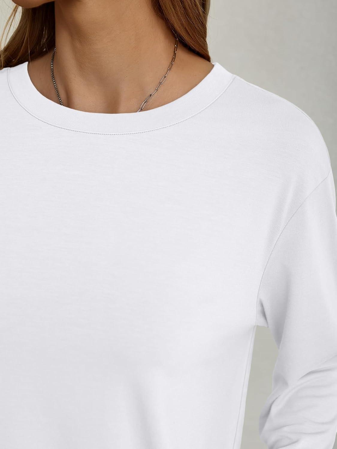 imageAUTOMET Womens Oversized Long Sleeve Shirts Fall Trendy Tops Fashion Gym Baggy Basic Casual Loose Fit Workout Y2k ClothesWhite