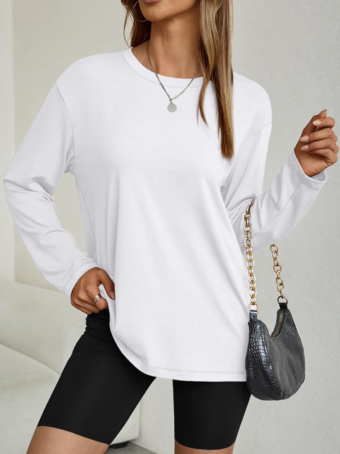 AUTOMET Women's Oversized Long Sleeve Shirts Fall Trendy Tops Fashion Gym Baggy Basic Casual Loose Fit Workout Y2k Clothes(White)