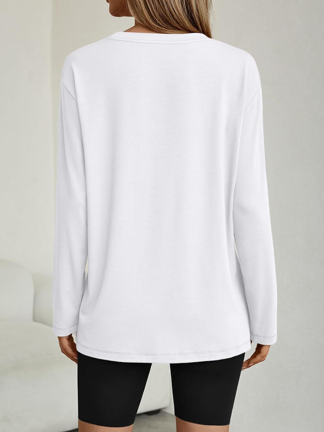 AUTOMET Women’s Oversized Long Sleeve Shirts Fall Trendy Tops Fashion Gym Baggy Basic Casual Loose Fit Workout Y2k Clothes(White)