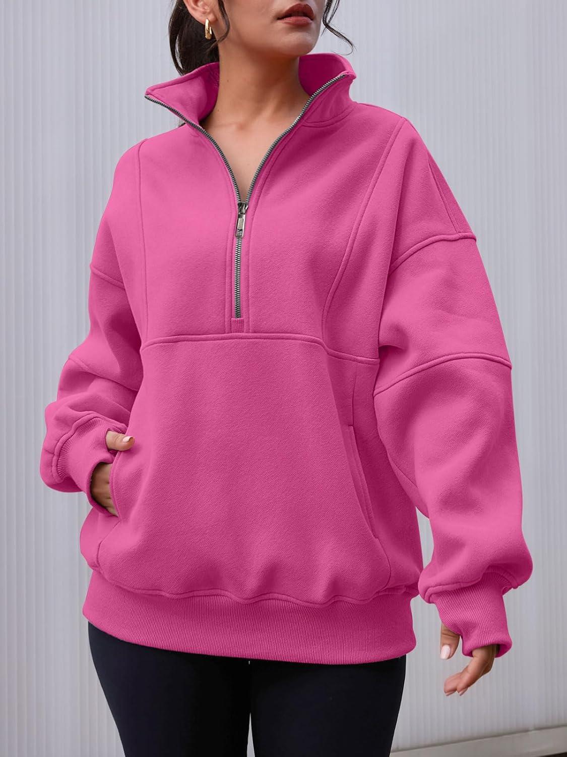 AUTOMET Womens Quarter Zip Oversized Sweatshirts Teen Fleece Pullover Hoodies 2025 Mock Neck Sweater Fall Workout Jacket(Hotpink)