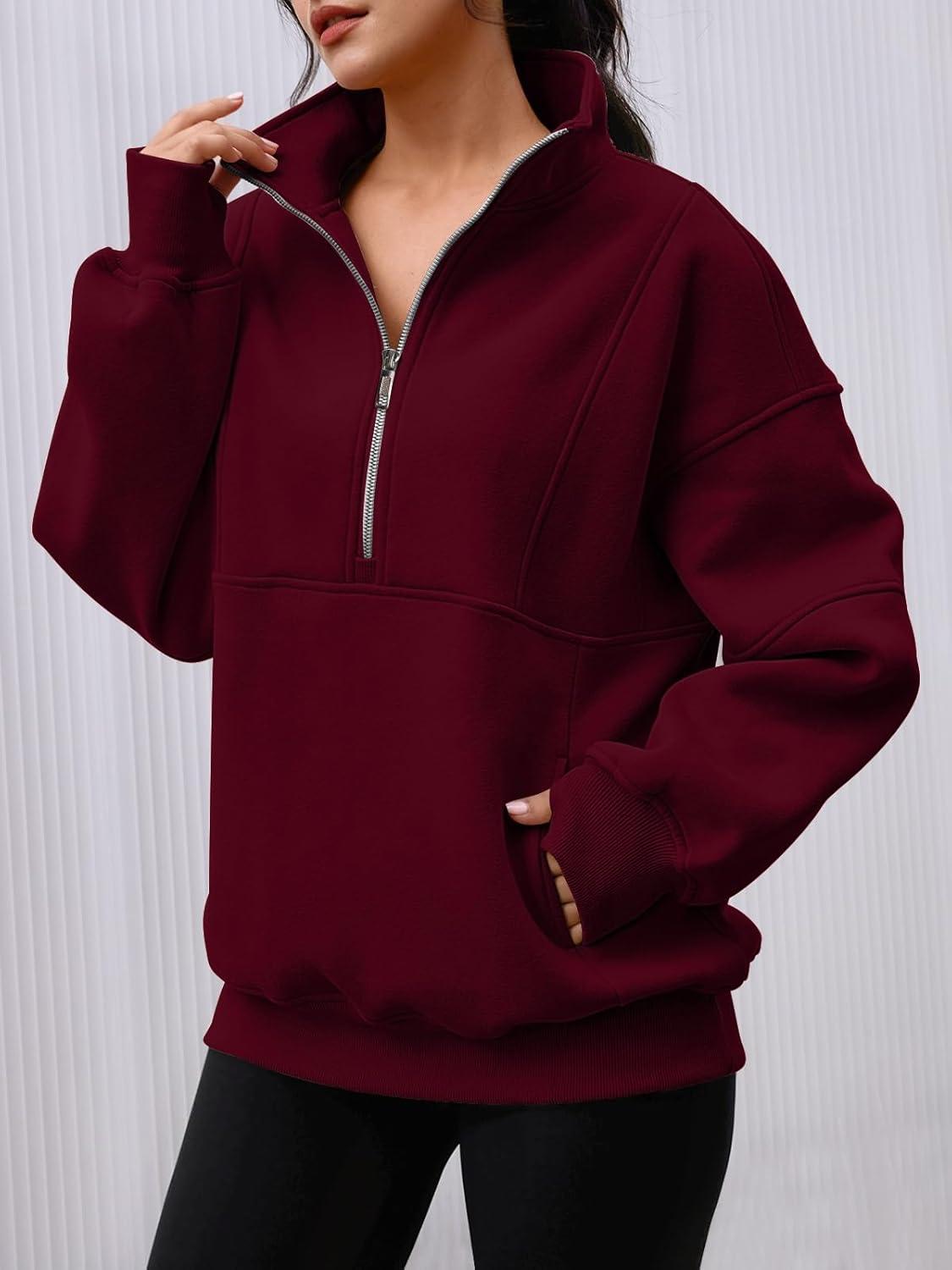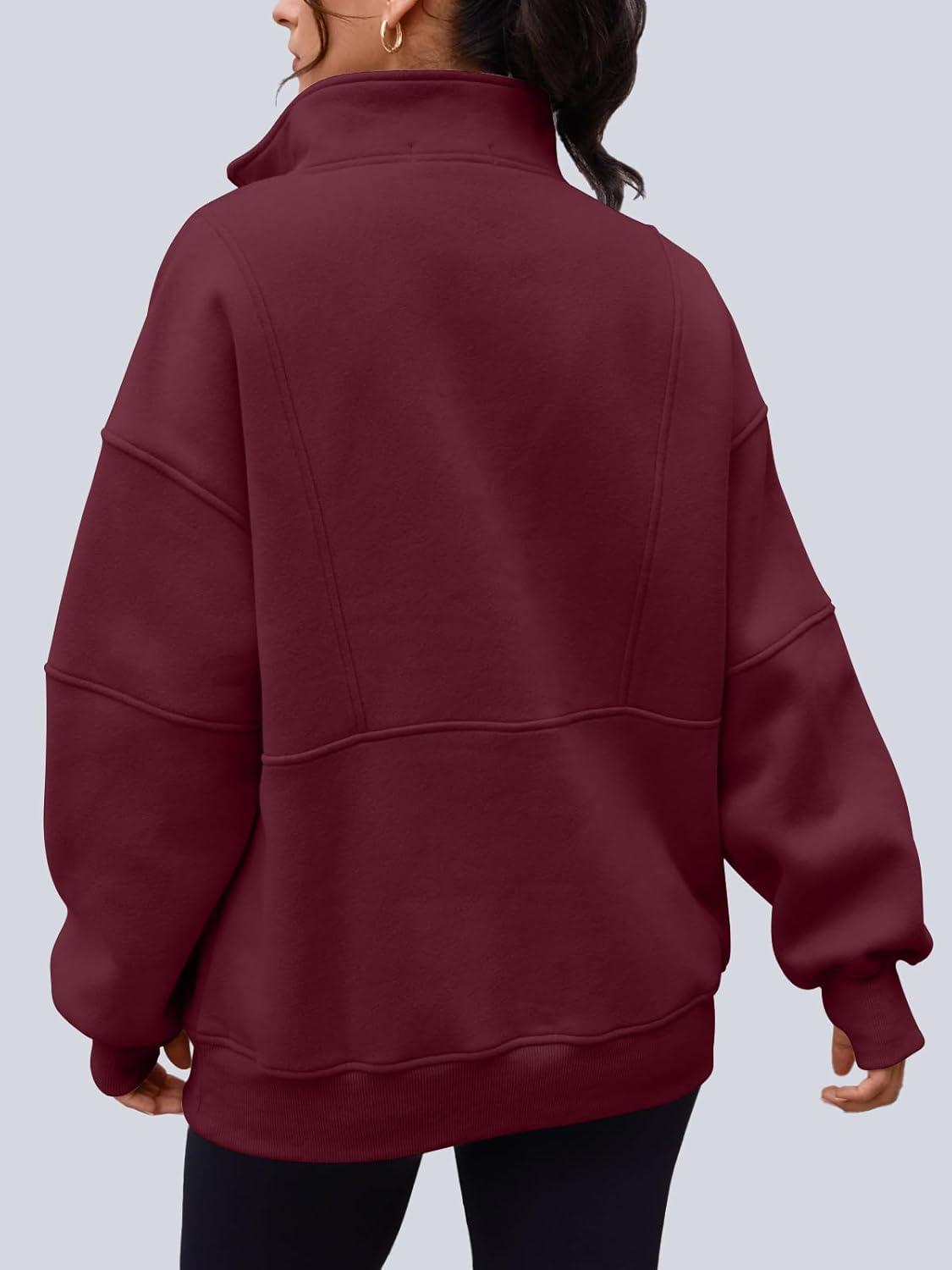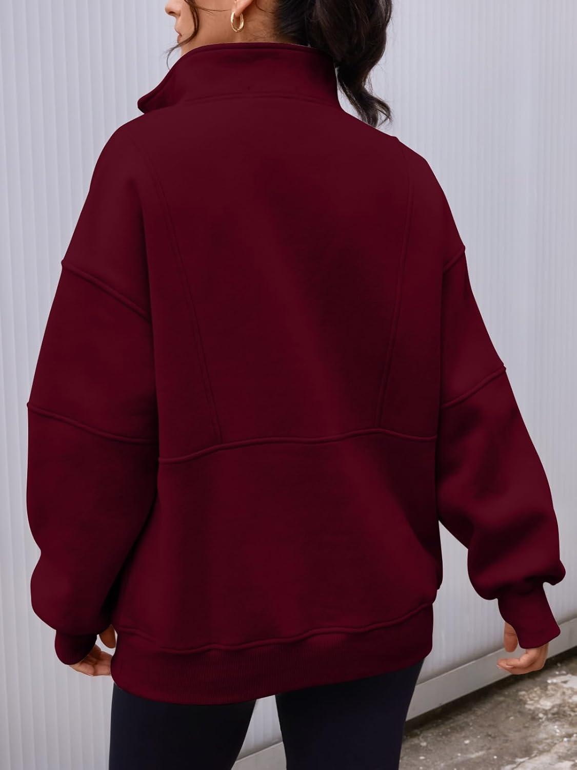 AUTOMET Womens Quarter Zip Oversized Sweatshirts Teen Fleece Pullover Hoodies 2025 Mock Neck Sweater Fall Workout Jacket(Winered)