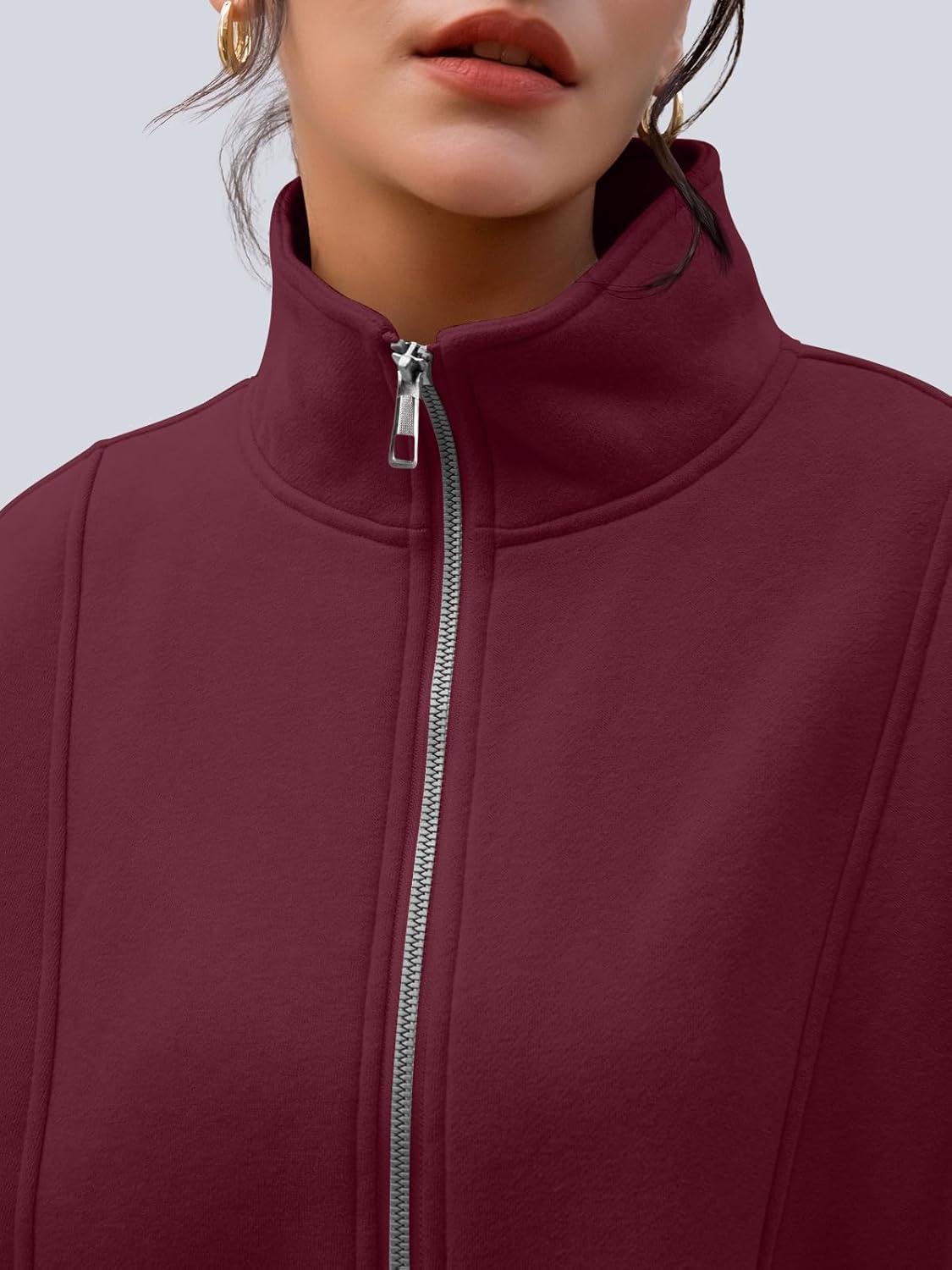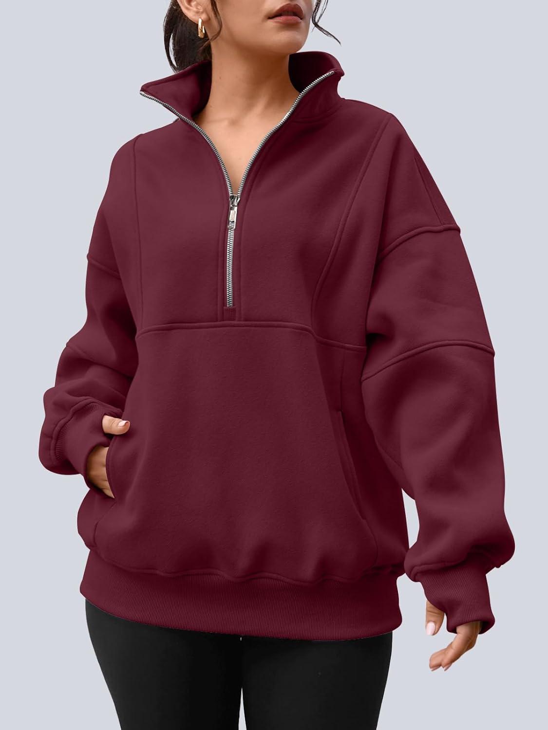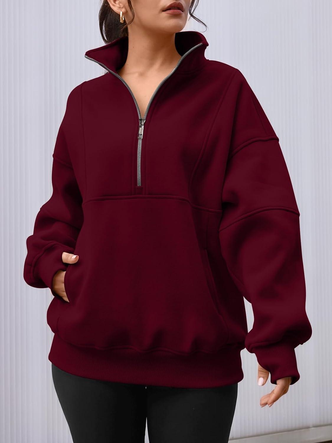 AUTOMET Womens Quarter Zip Oversized Sweatshirts Teen Fleece Pullover Hoodies 2025 Mock Neck Sweater Fall Workout Jacket(Winered)