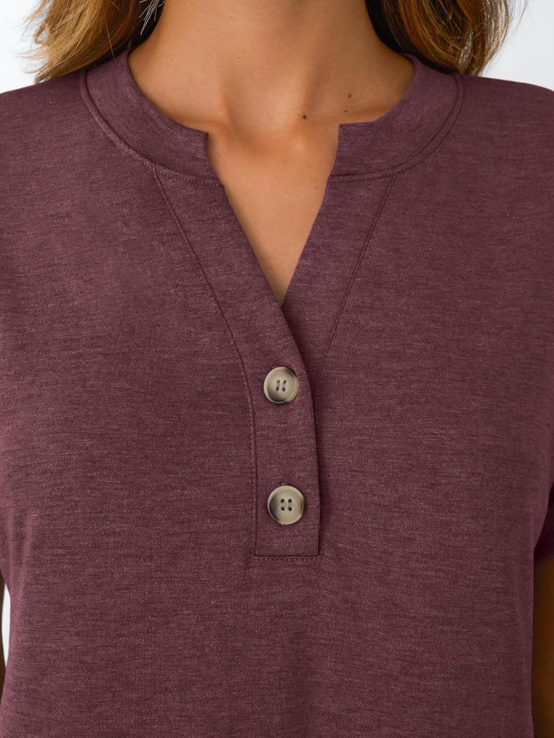 AUTOMET Women’s Short Sleeve Shirts Henley Dressy Casual Summer Tops 2025 Trendy Blouses Cute T-Shirts Outfits Clothes(Wine)