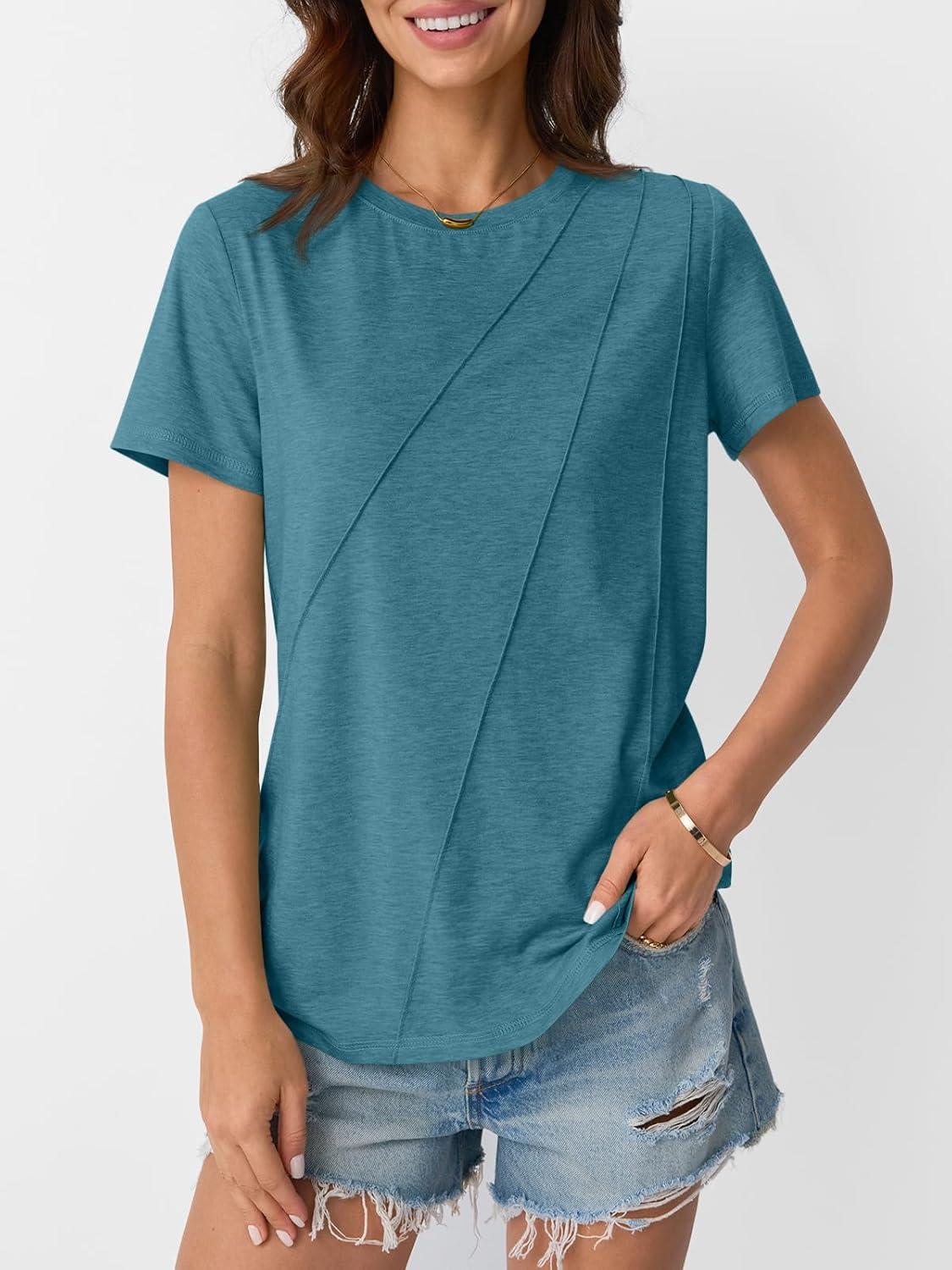 AUTOMET Womens Summer Tops Workout Shirts Beach Vacation Outfits Business Tshirts Dressy Fashion Spring Clothes 2025(Bluegreen)
