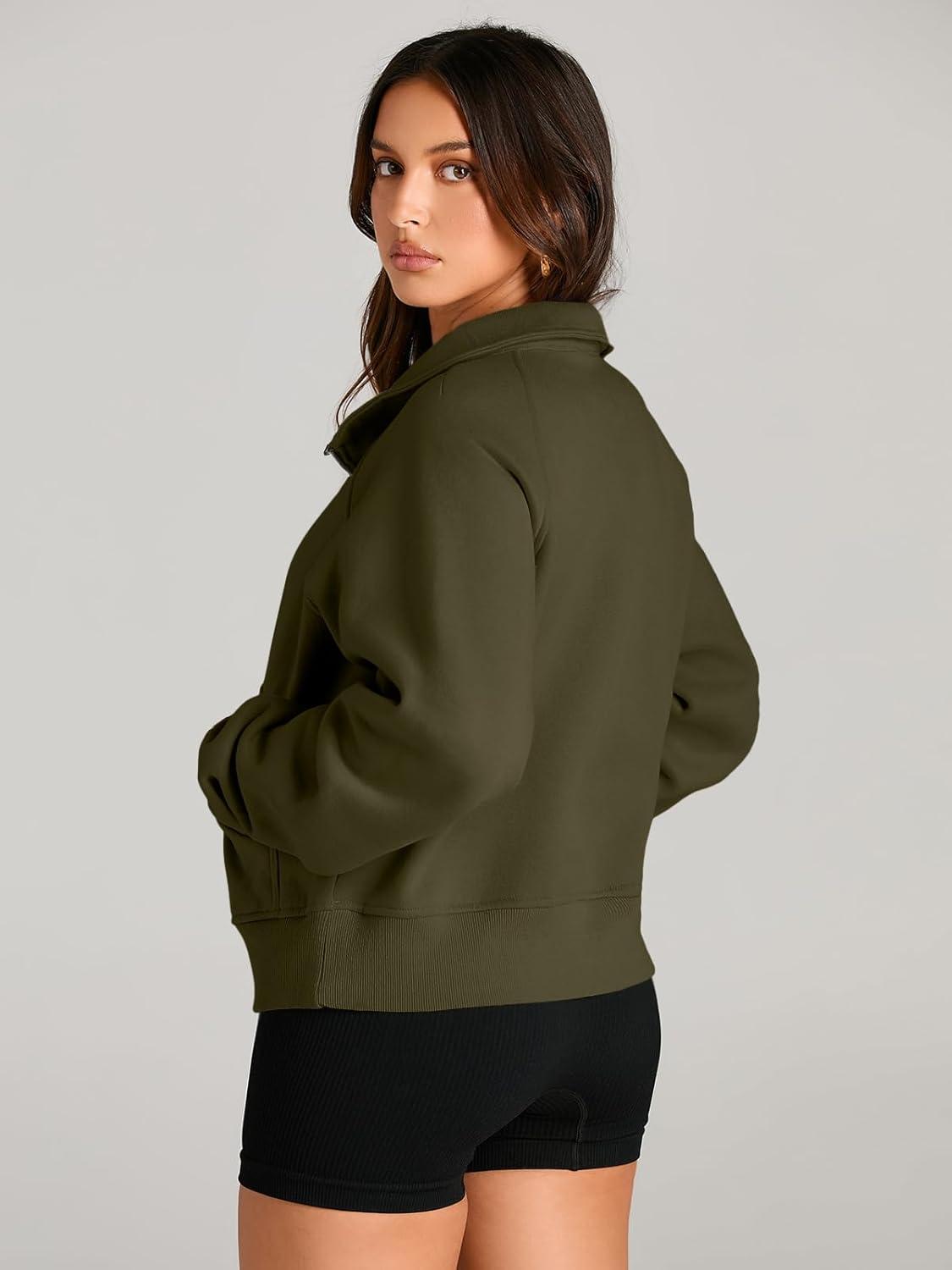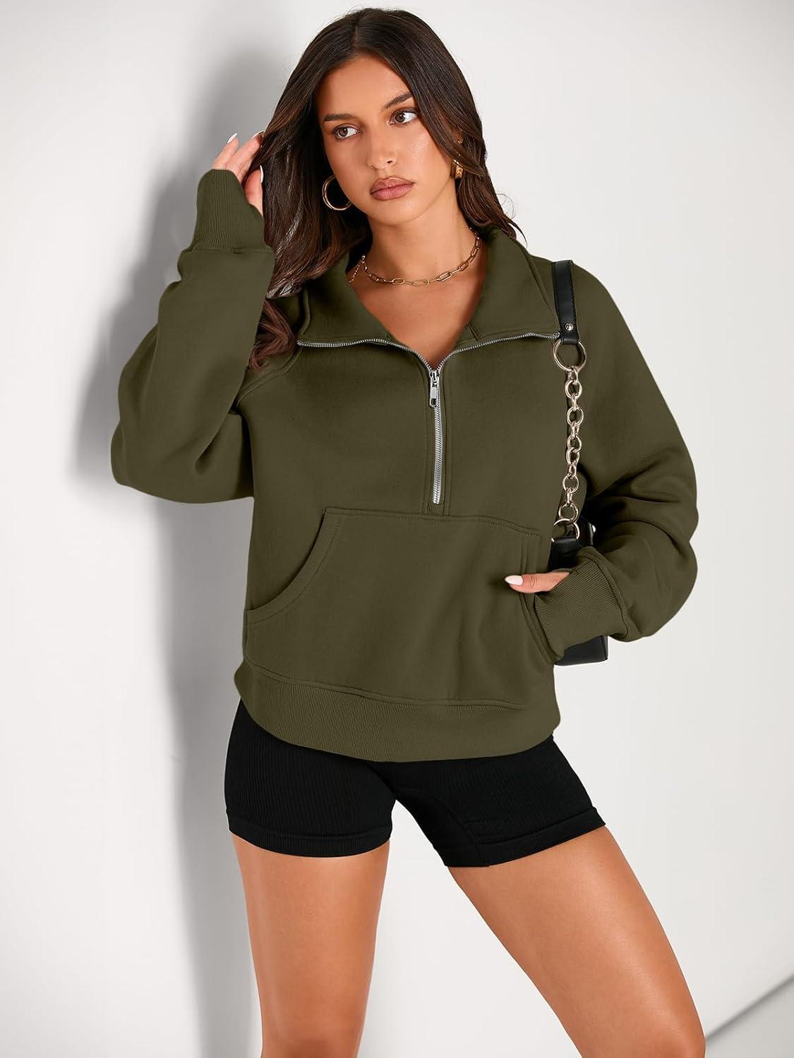 AUTOMET Womens Sweatshirts Half Zip Cropped Pullover Fleece Quarter Zipper Hoodies 2025 Fall Fashion Outfits Clothes(Armygreen)