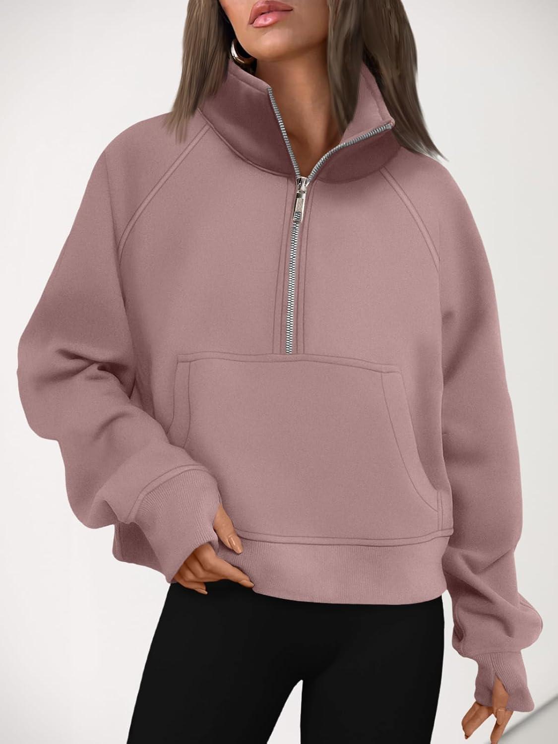 AUTOMET Womens Sweatshirts Half Zip Cropped Pullover Fleece Quarter Zipper Hoodies 2025 Fall Fashion Outfits Clothes(Darkpink)