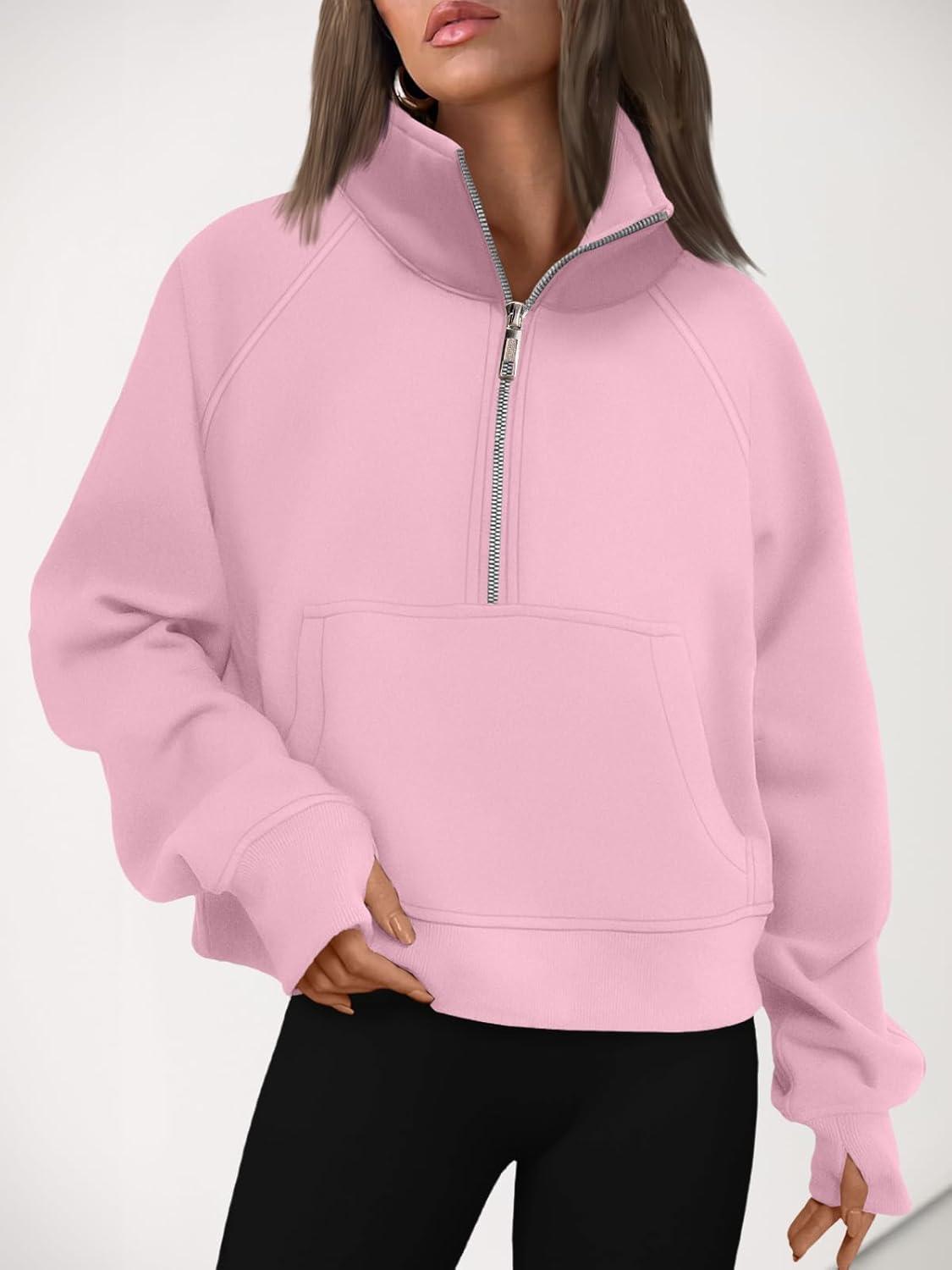 AUTOMET Womens Sweatshirts Half Zip Cropped Pullover Fleece Quarter Zipper Hoodies 2025 Fall Fashion Outfits Clothes(Lightpink)