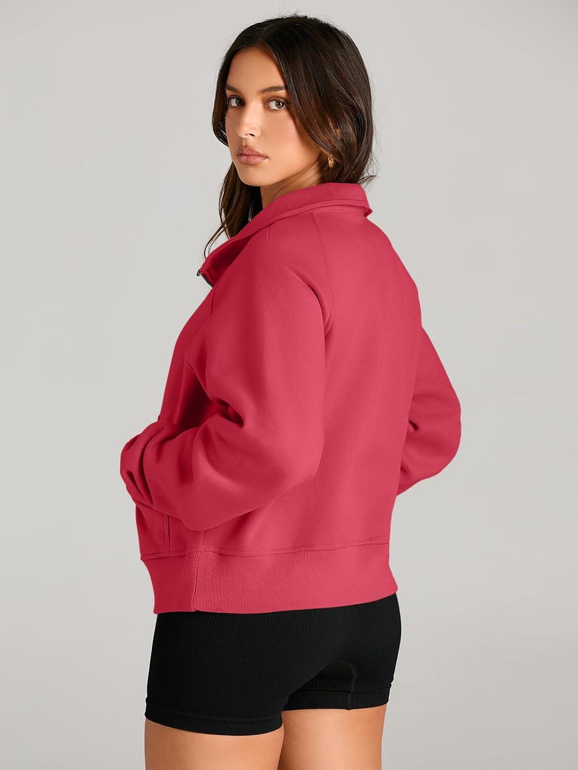 AUTOMET Womens Sweatshirts Half Zip Cropped Pullover Fleece Quarter Zipper Hoodies 2025 Fall Fashion Outfits Clothes(Rose)