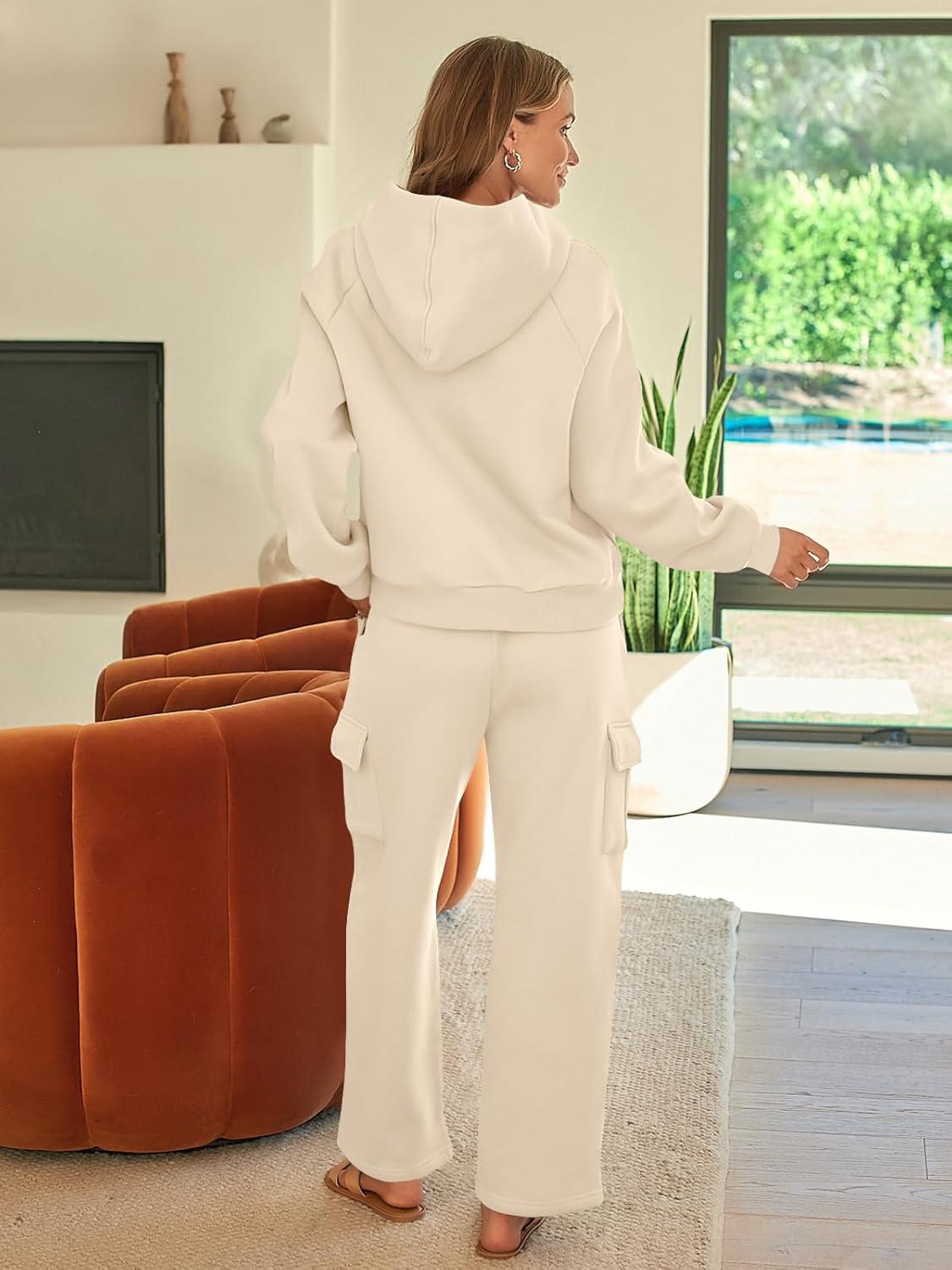 AUTOMET Womens Sweatsuits 2 Piece Outfits Fall Sweat Sets Lounge Hoodies and Cargo Pants Wide Leg with Pockets(Apricot)