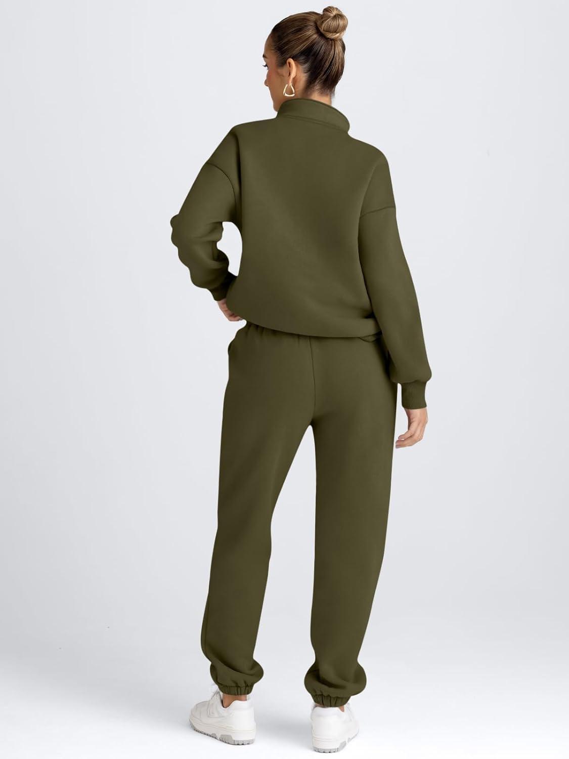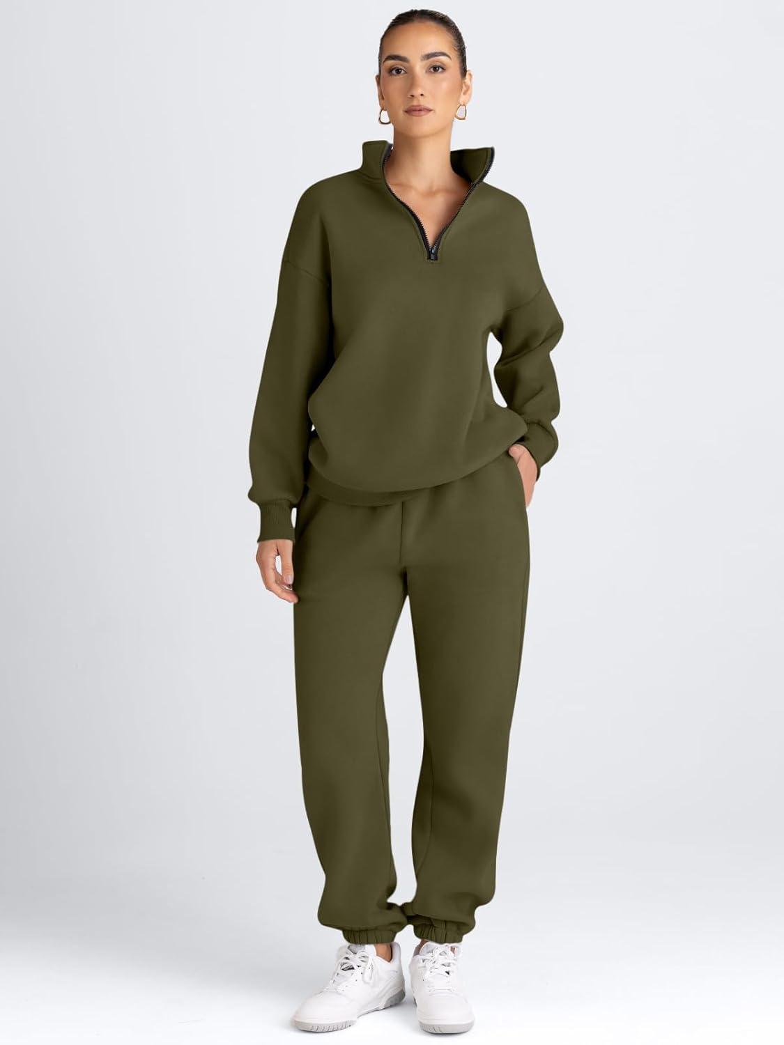 AUTOMET Women’s Sweatsuits 2 Piece Outfits Lounge Sets Long Sleeve Half Zip Pullover and Baggy Sweatpants with Pockets(Armygreen)