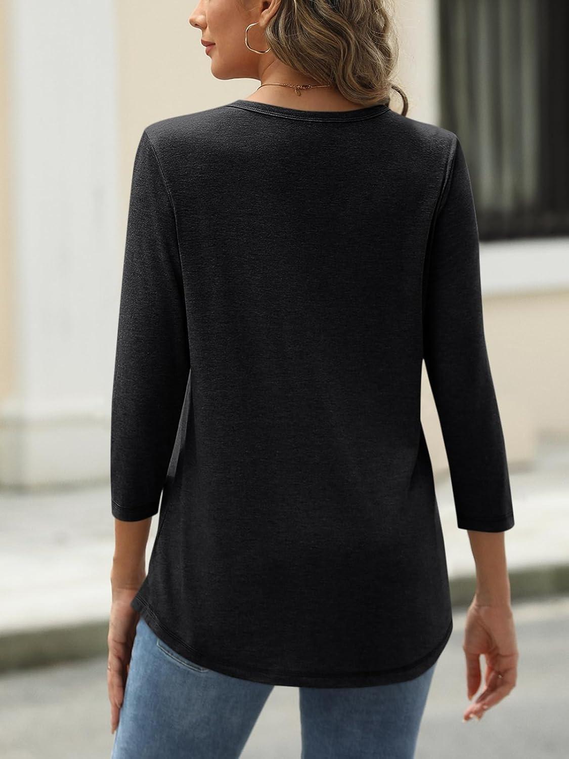 AUTOMET Womens Tops 3/4 Length Long Sleeve Shirts Fall Clothes Business Casual Dressy Blouse Loose Fit Basic Tee Trendy(Black)